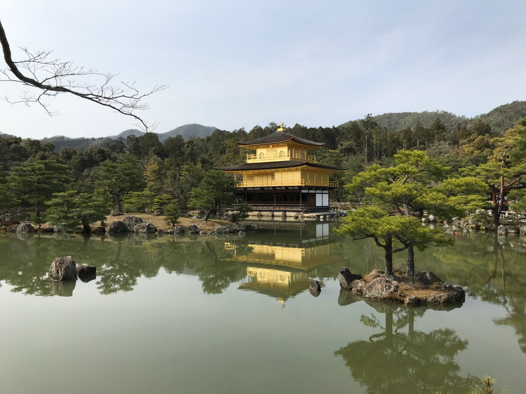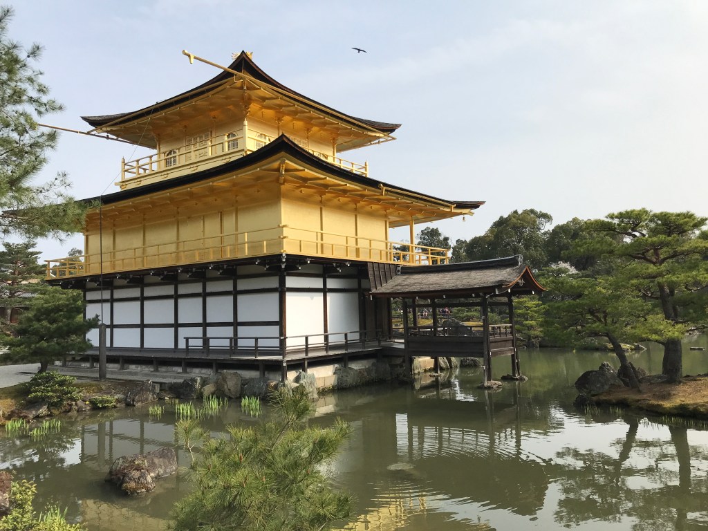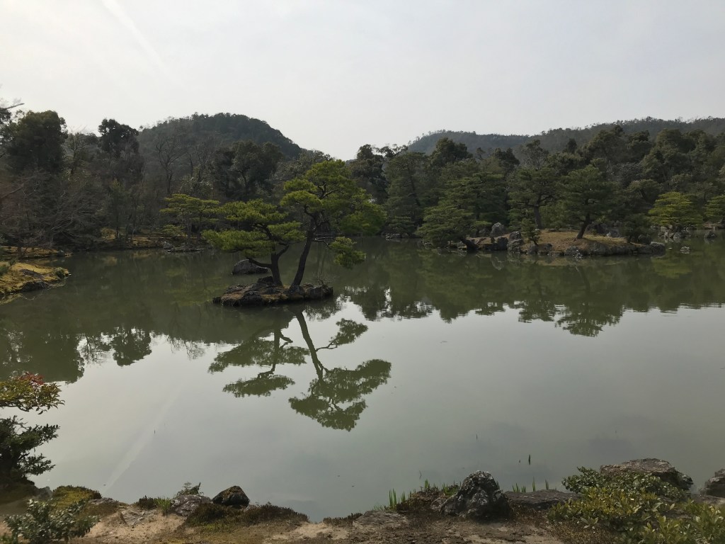 Kinkaku-ji: a gold-colored Buddhist temple. Now this temple was impressive. The entire premise was absolutely flooded with tourists, and for good reason. The temple stands behind a cool green lake littered with bonsai trees.