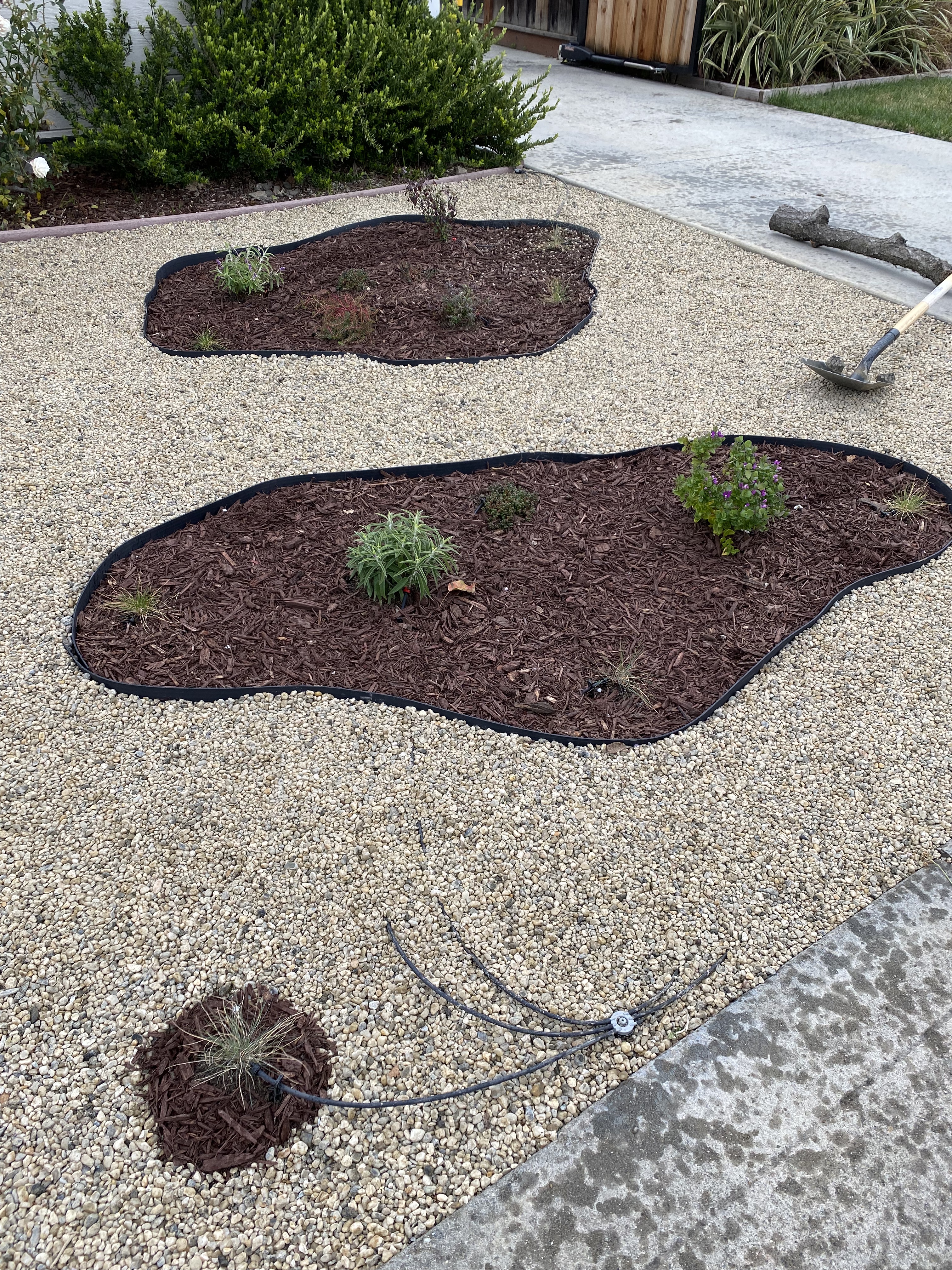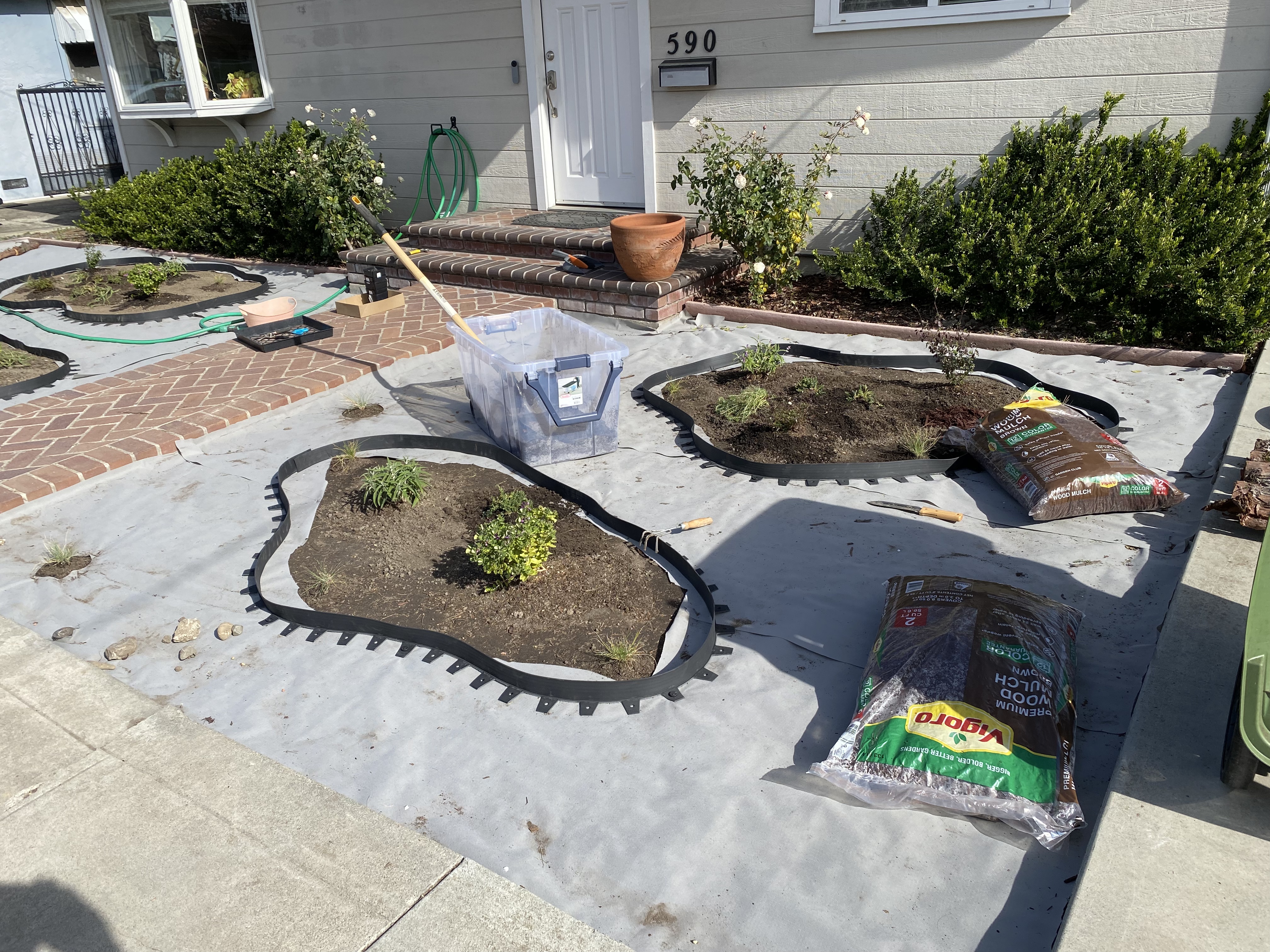 - Not getting a wheelbarrow or cart earlier on. Would have made placing mulch extremely fast.