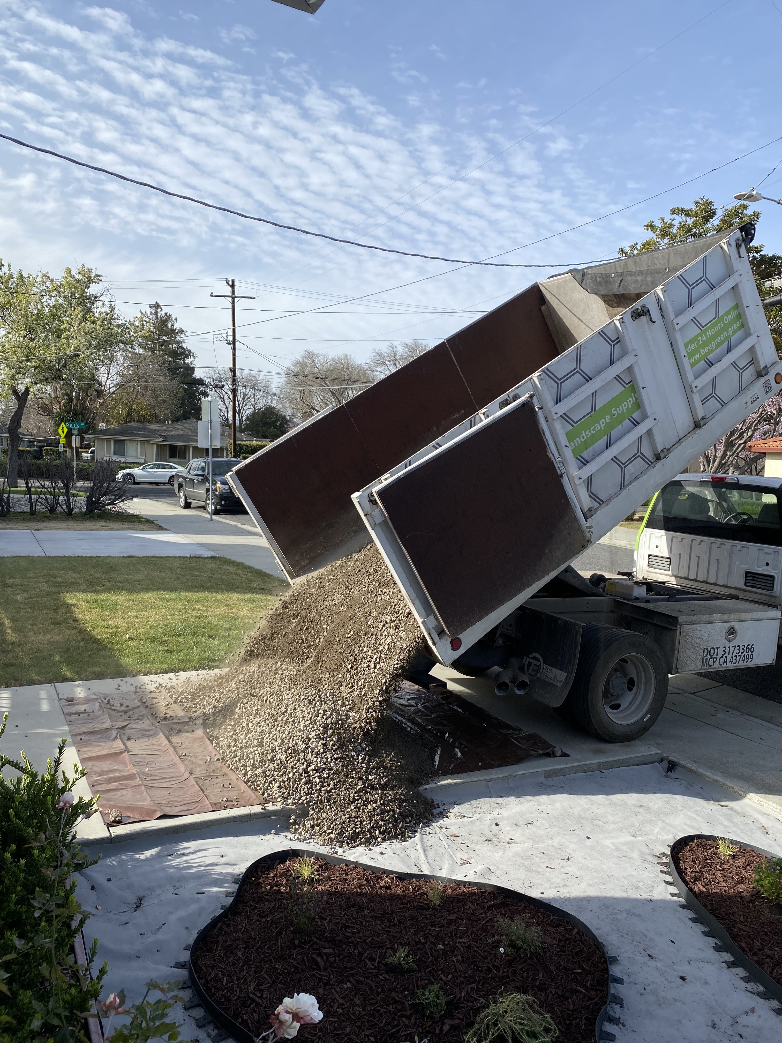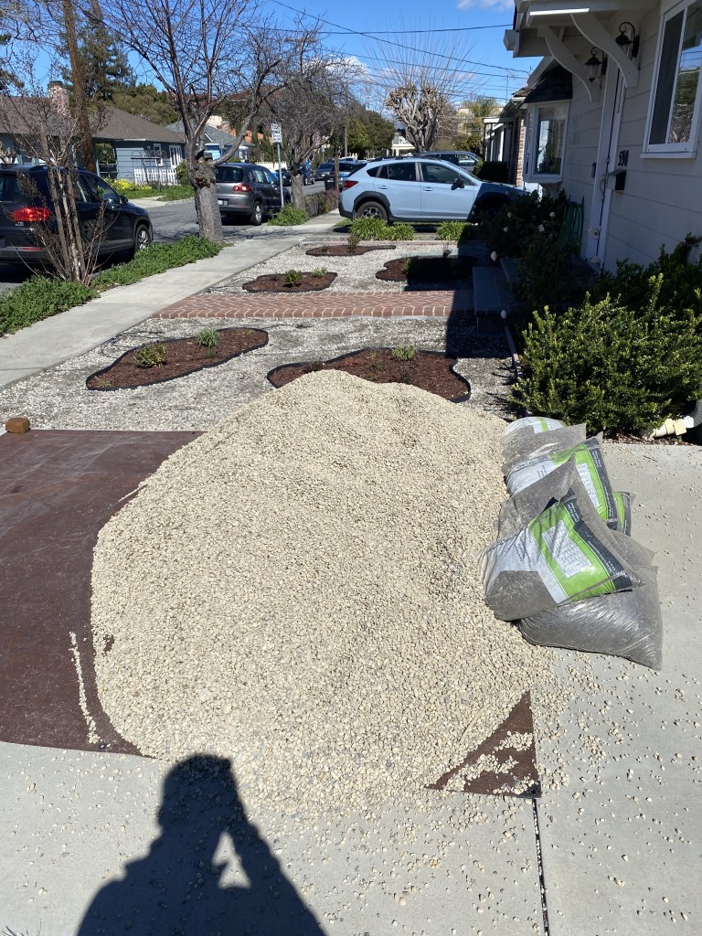 Thank you! I ordered 1.25 cubic yards of gravel (up to 3/4″ big), and 1 cubic yard of the rock (3/8″ stones branded as Yuba Stone). 1 cubic yard was too much. We only needed 0.75 cubic yards. The extra we put into the side yard.