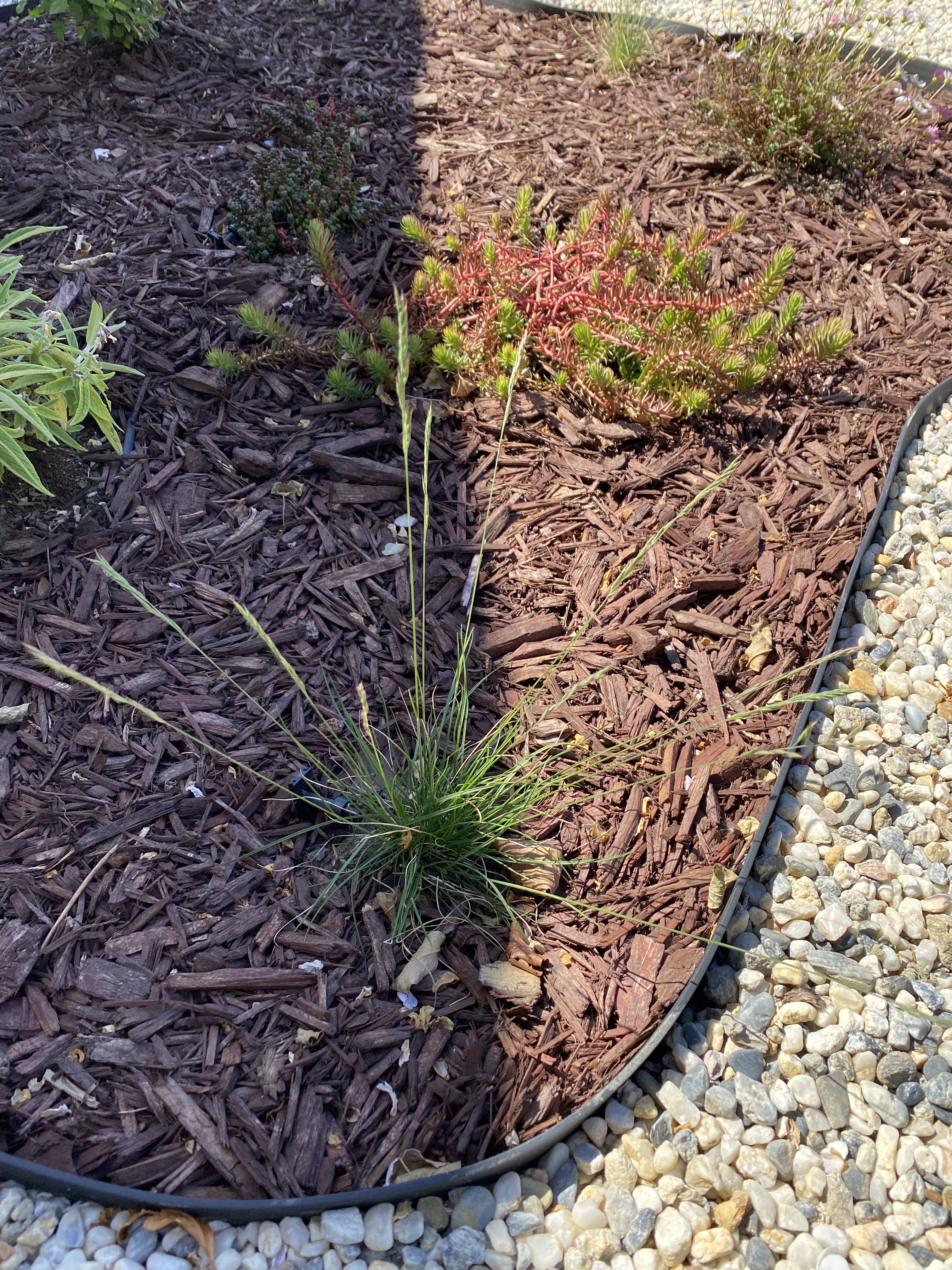 - After removing the grass, I procrastinated a couple weeks before placing the landscape fabric, causing weeds to start to grow.