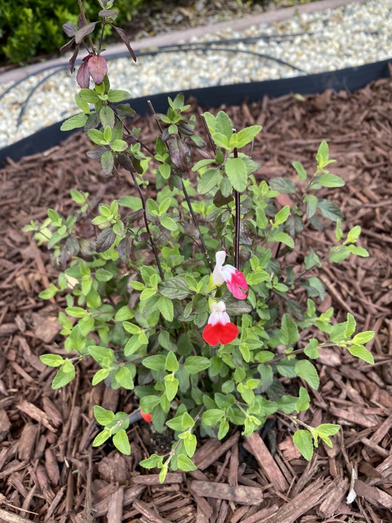 We then filled the groups of plants with mulch, leaving about 1″ of space around the base of each plant.