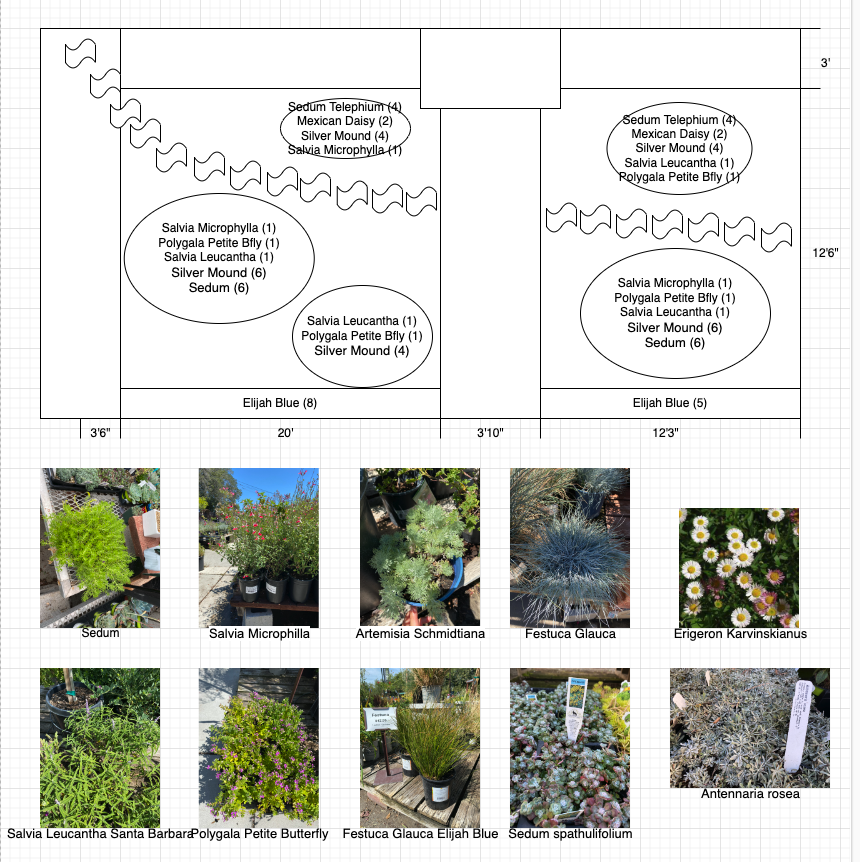 Bonita and I visited several local nurseries and learned about the types of plants that were classified as drought friendly. I measured our lawn dimensions and we made a simple design of what we wanted the lawn to look like.