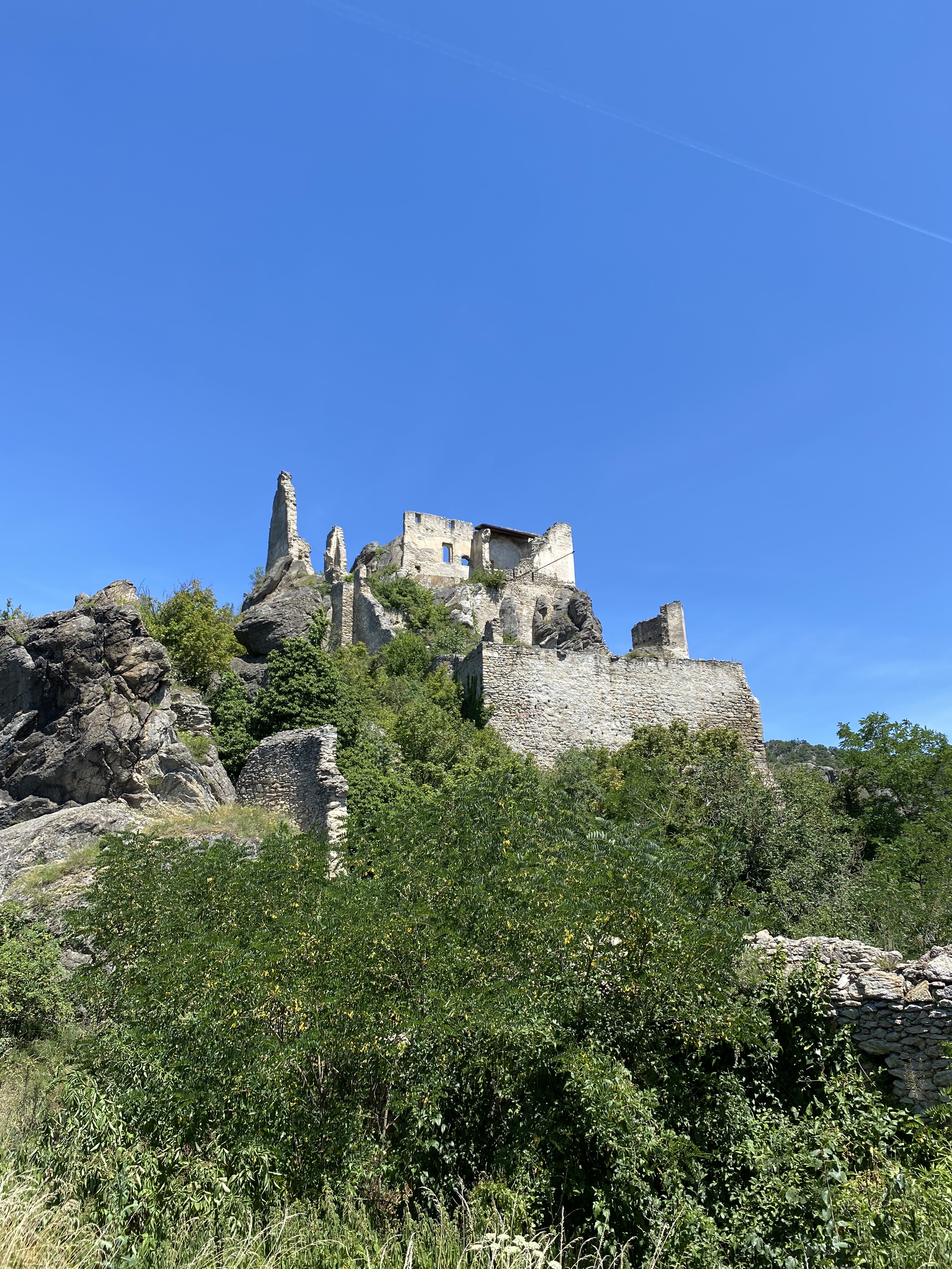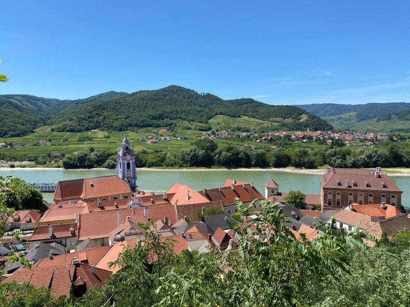 The views were great: stone buildings at every turn, the river landscape in the immediate background, and mountains filled with grapevines in the backdrop. While still wearing our layers from the flight, I convinced poor Bonita to hike up a steep trail to Burgruine Durnstein, a 12th century fort where Richard the Lionheart was held prisoner. She was imprisoned by my poor choice of activity under the hot summer sun.