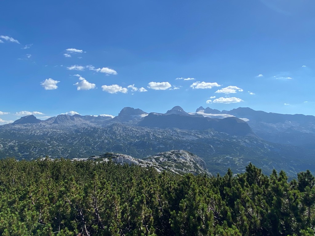 As soon as we got off the gondola, we were greeted by clear views of the Dachstein Mountains. The highest peak is about 9,000 feet tall, and some snow was still visible.