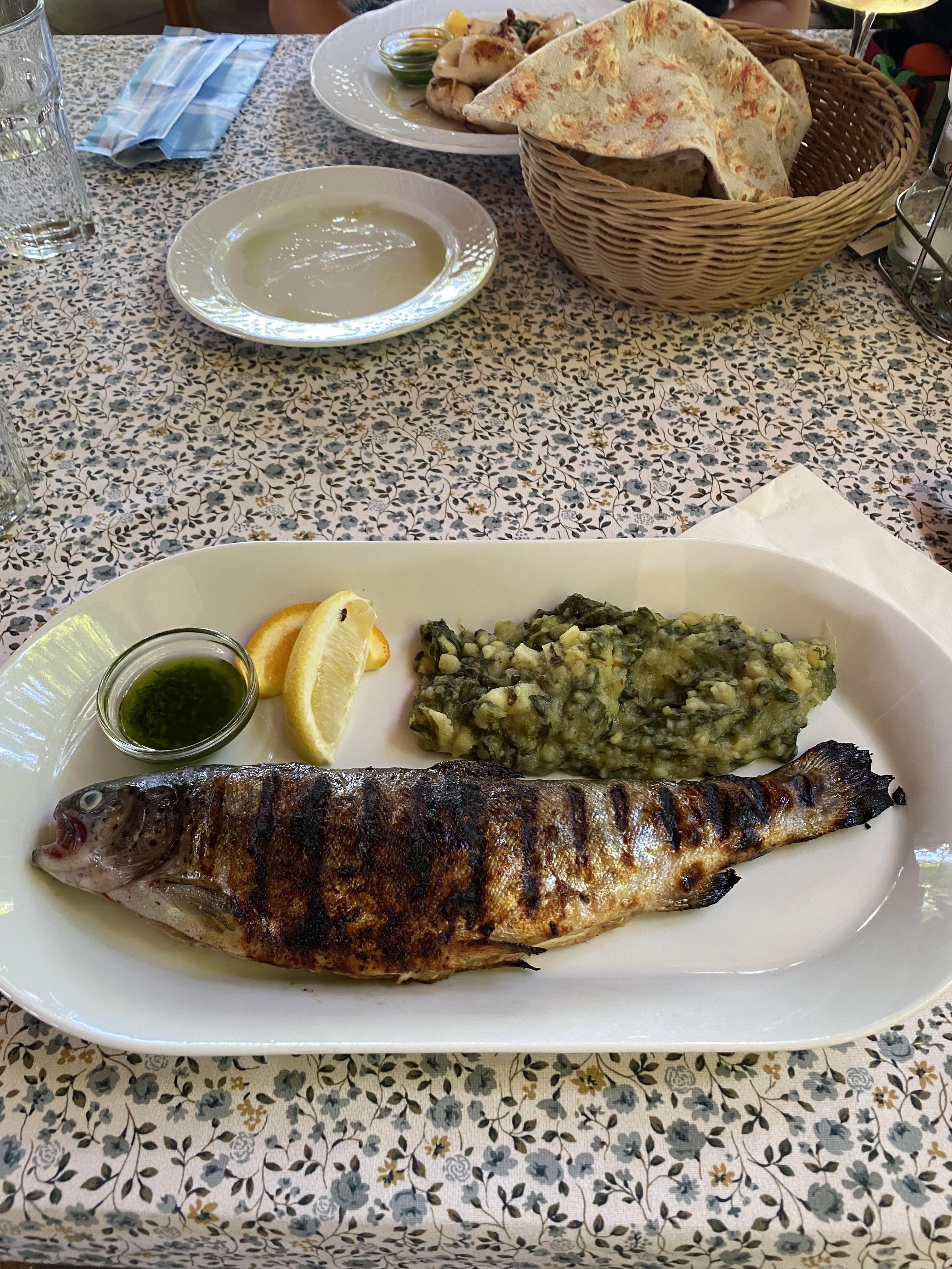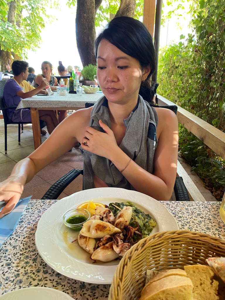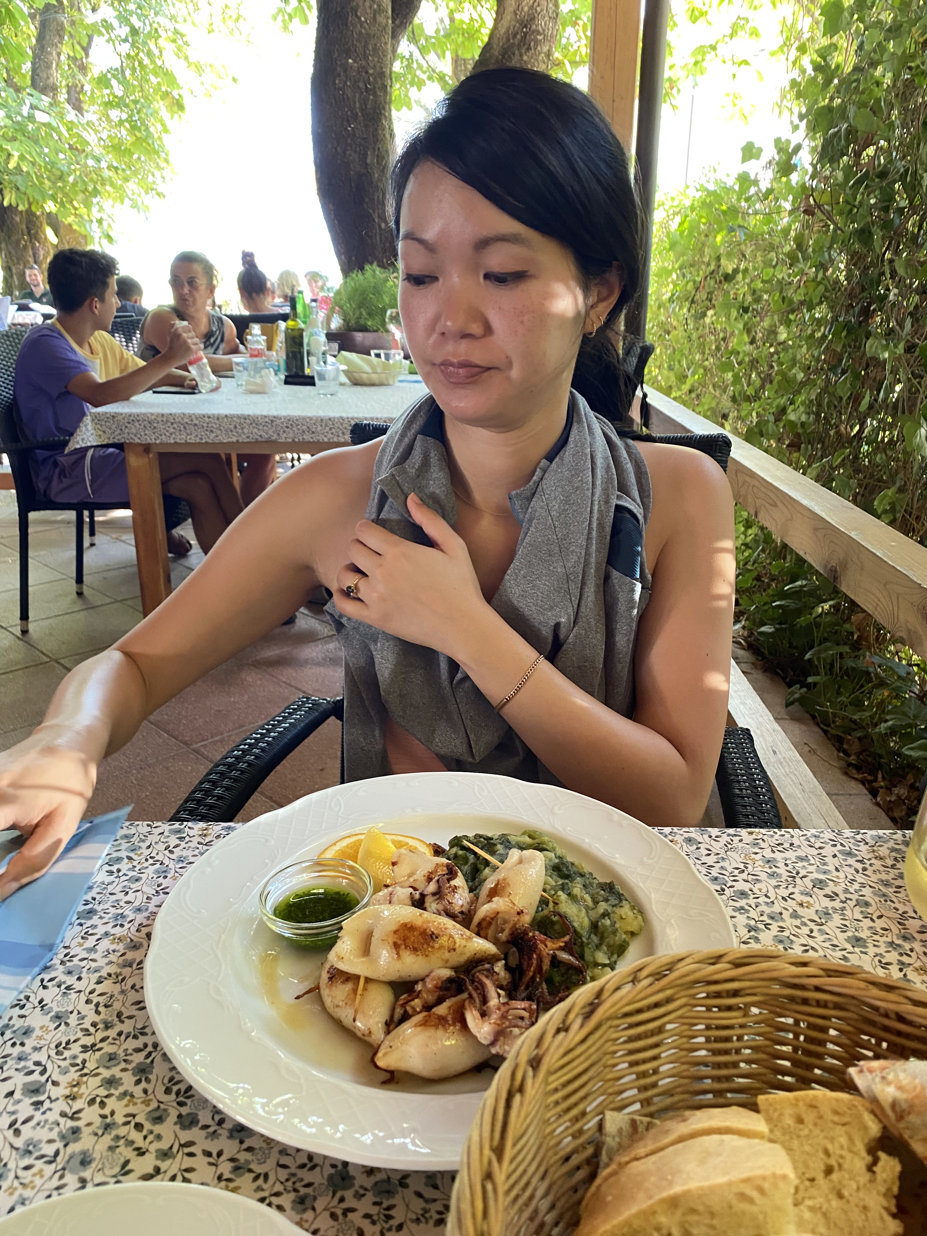 Lunch was seafood. We got a whole fish and some baby octopus. As the first meal in Slovenia, we were happy with the flavor and thought it surpassed the food we ate in Austria.