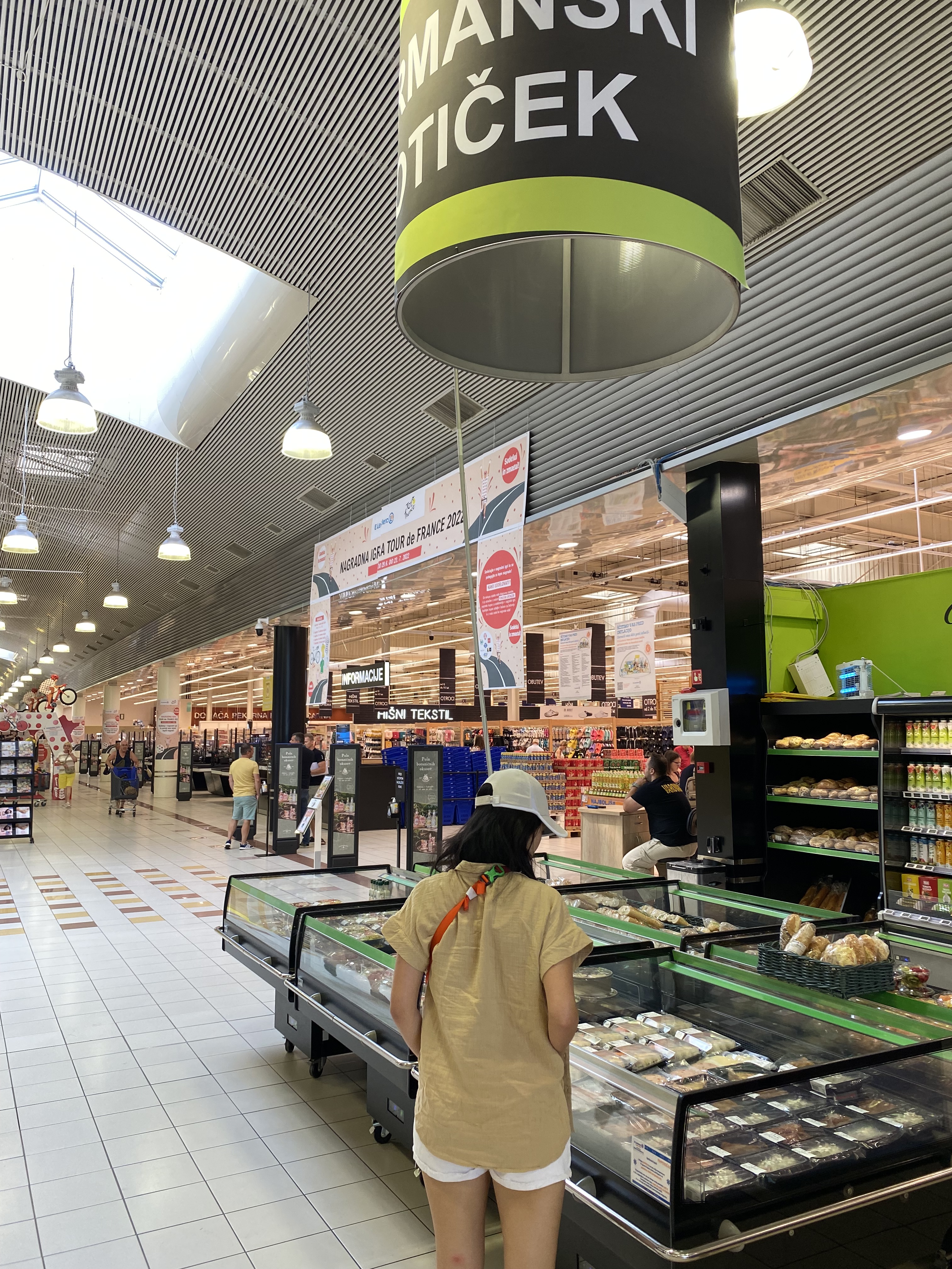But first… our fascination with foreign grocery stores took precedence. Here’s a big grocery store we visited to get some snacks and water.