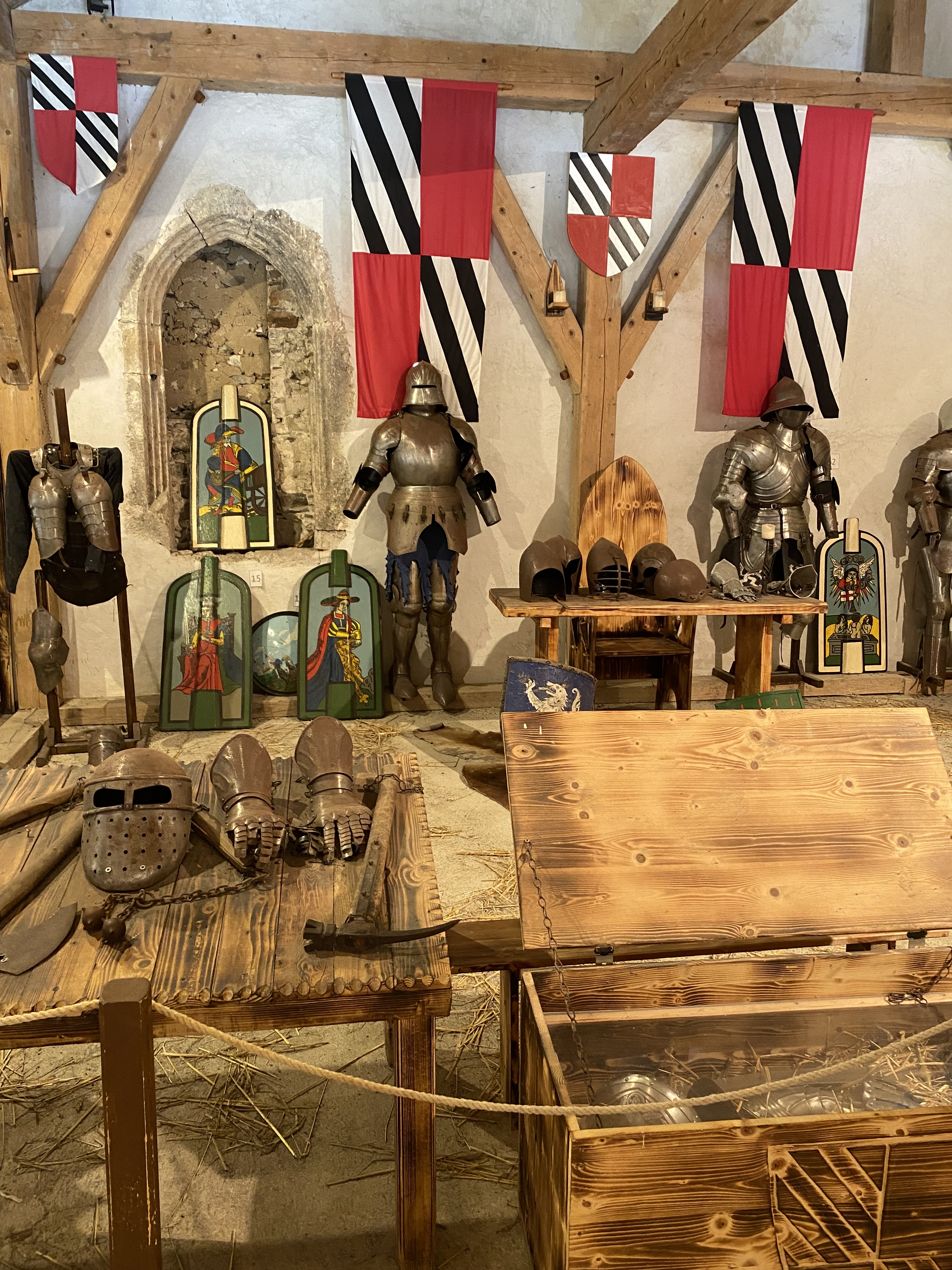 Another room showcased a bunch of armor, swords, and axes. I enthusiastically examined each one and read their descriptions in detail. I think Bonita got quite bored.