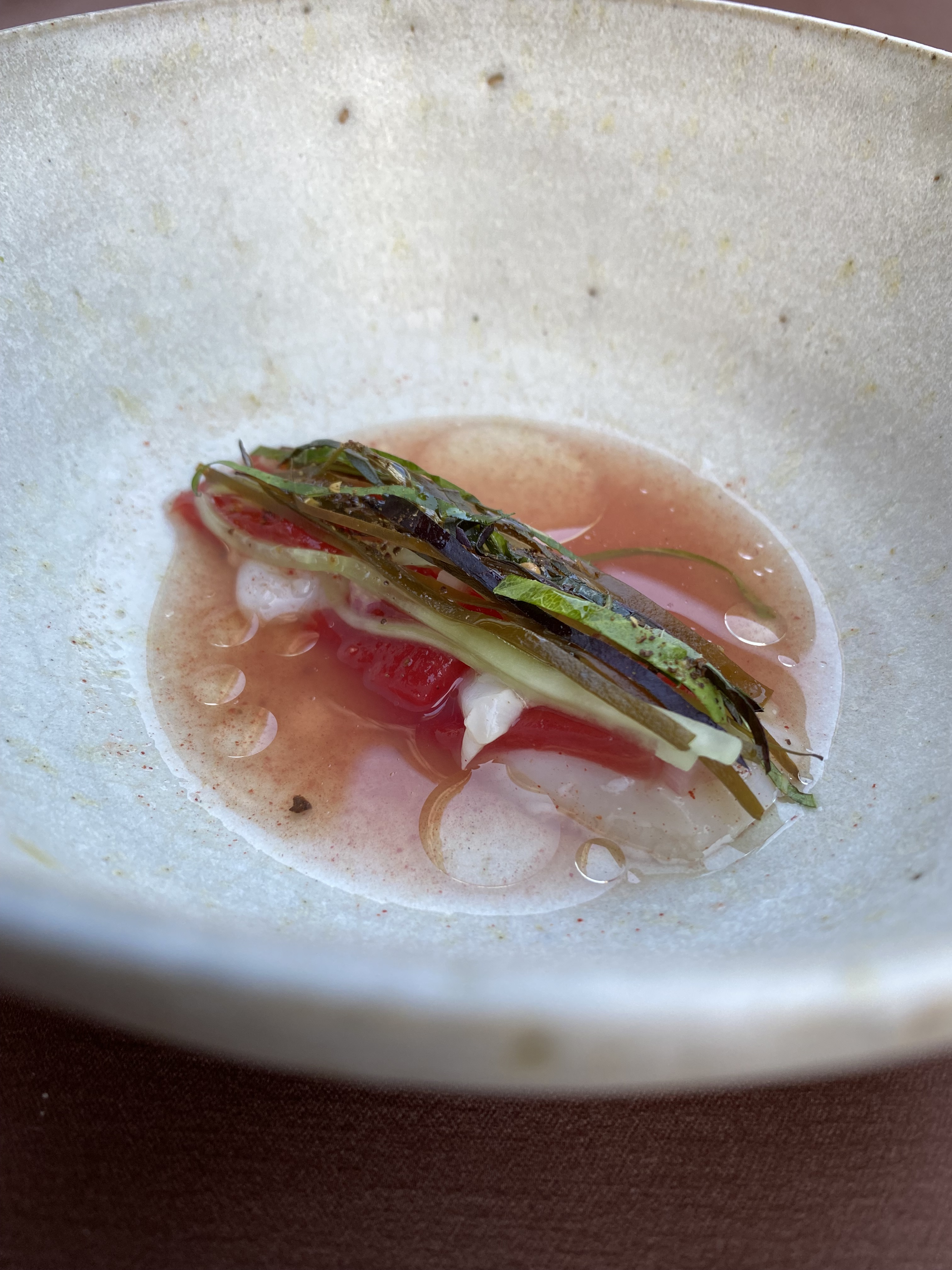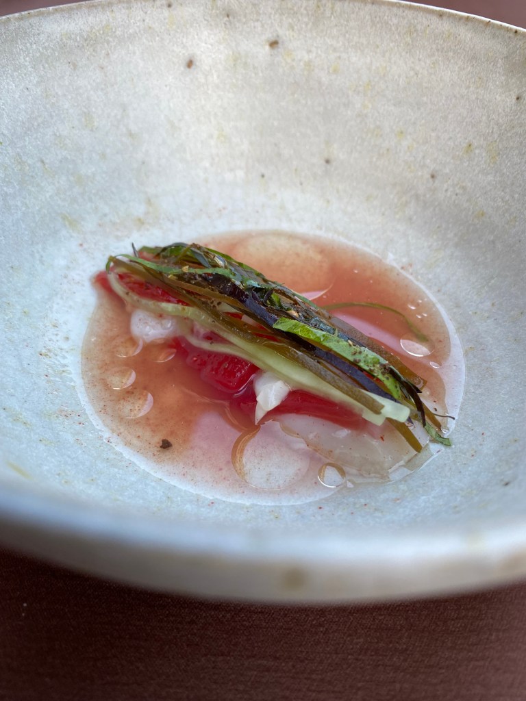 Unfortunately, I don’t remember much about the food and can’t offer any meaningful detail. Our server struggled with English, seemed new, and we weren’t given a written menu that helped us understand each item. Bonita also ordered the wine pairingmenu, but the server just poured each bottle into the same wine glass.