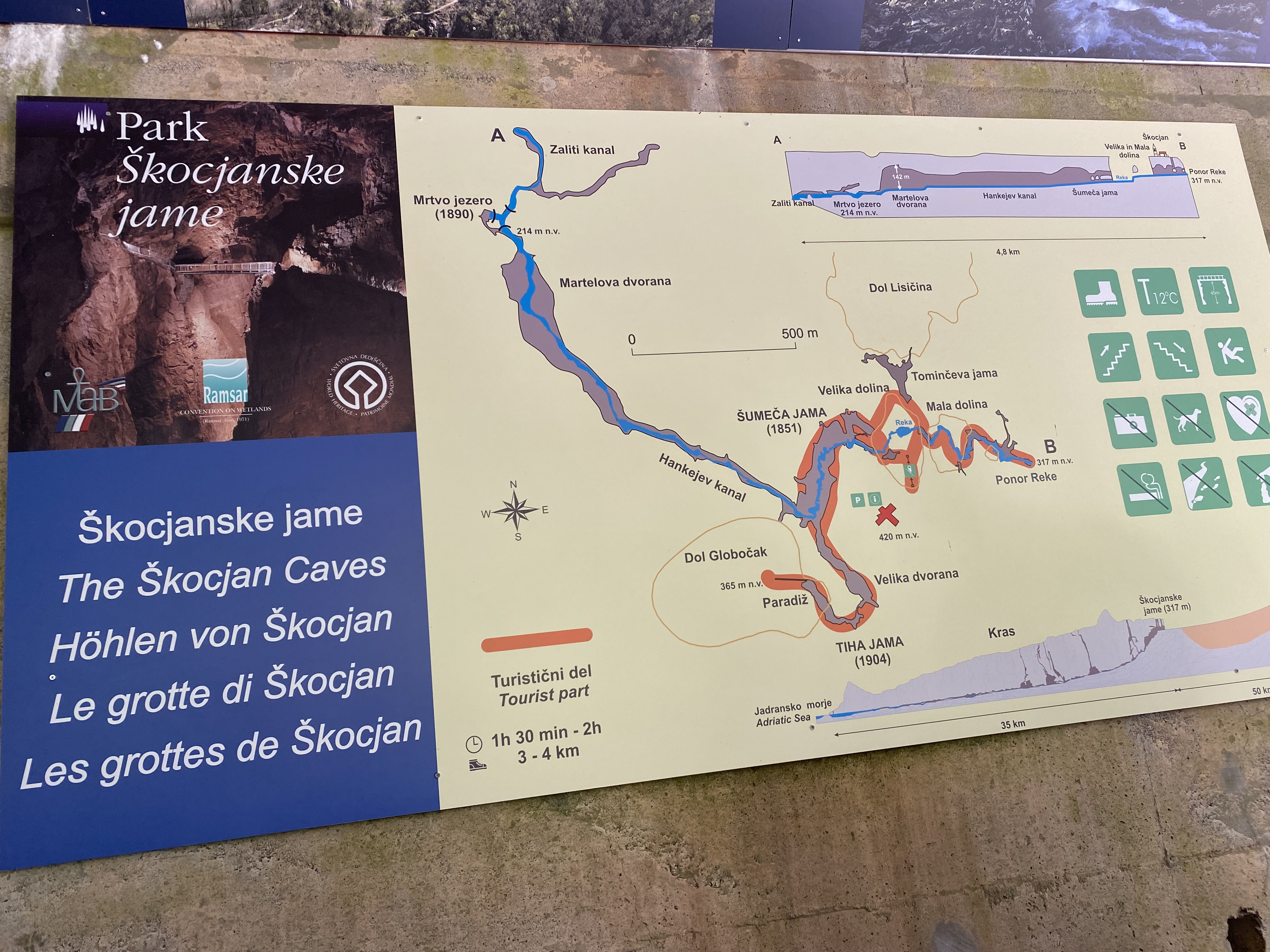 The heat wave was unbearable. The original goal was just to spend two days in Slovenia, then head to Croatia early in the morning to Plitvice Lakes. Given that temperatures would reach the 100s by noon, we changed plans to avoid the sun. Bonita found Skocjan Caves, a UNESCO World Heritage Site comprised of stalactites, stalagmites, and a running underground river.
