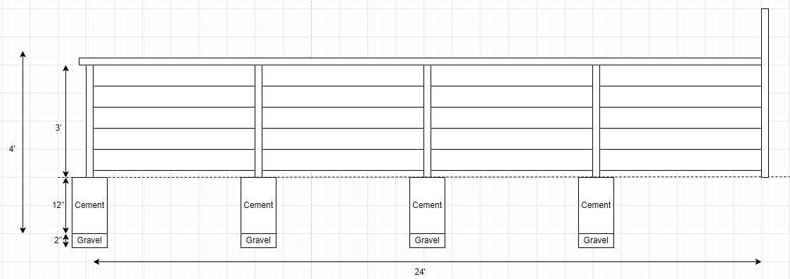 After 24 hours, the concrete dried and the fence boards were ready to be placed.