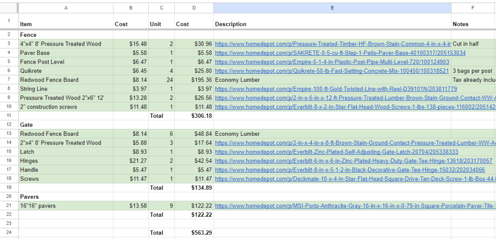 I think of the project as three distinct components: the fence, the gate, and the walking path. Together, everything only cost $563.29. Here’s a full breakdown.
