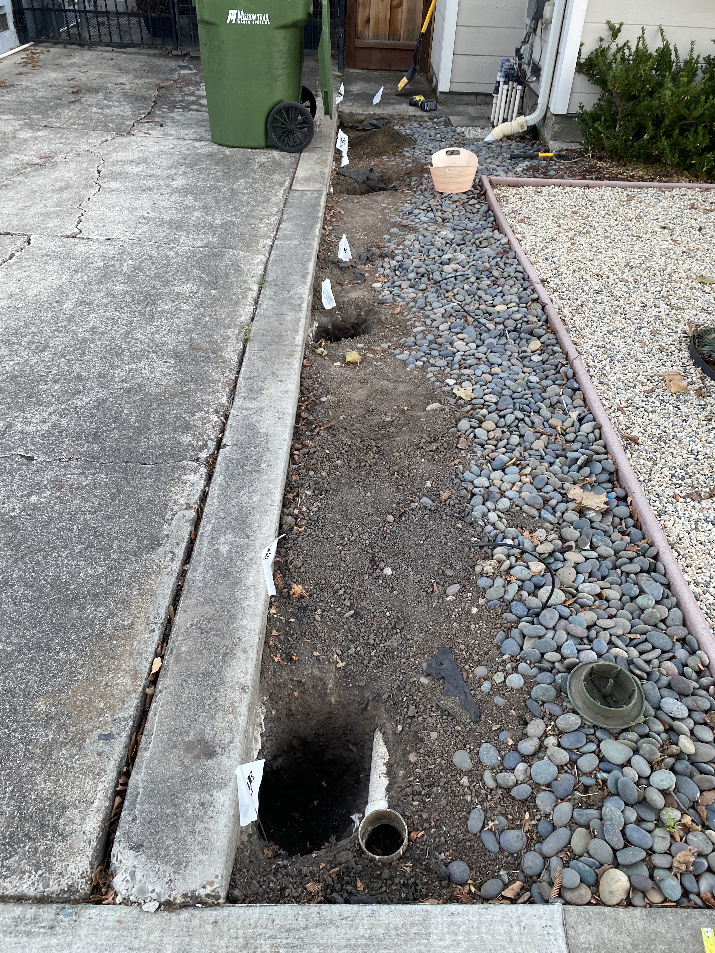 The main reason for the project was to reduce yard maintenance. There were three fully grown Blue Lily of the Nile and a big bush that grew through weed barriers, swallowed the river rocks, and destroyed the drip irrigation system.