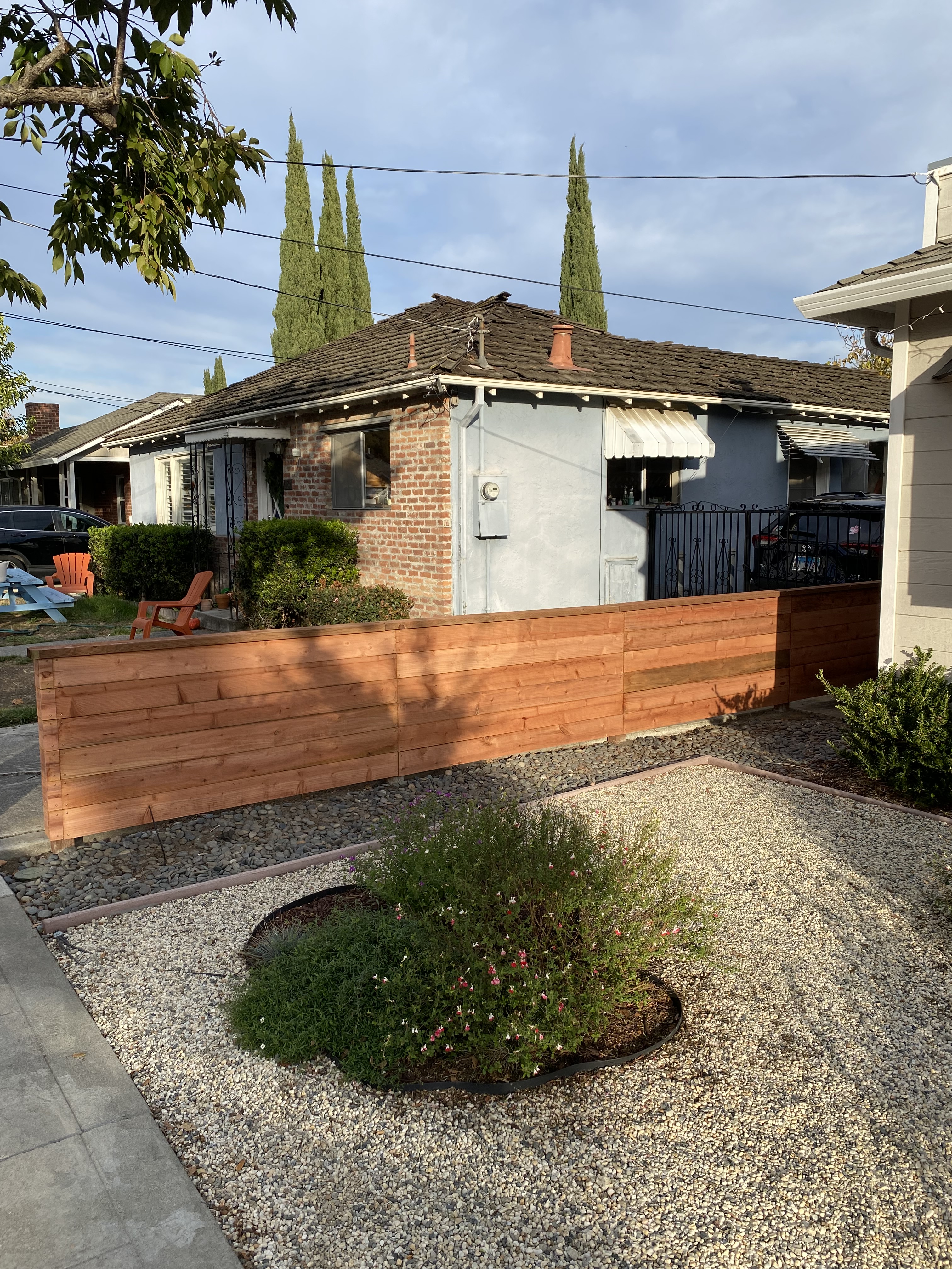 The idea was to build the entryway and fence along the property line. I liked the modern look of horizontal fence boards and opted for redwood to maintain the same look as the fence that the contractors used. Per usual, I drafted a design and ran it by wifey for approval.