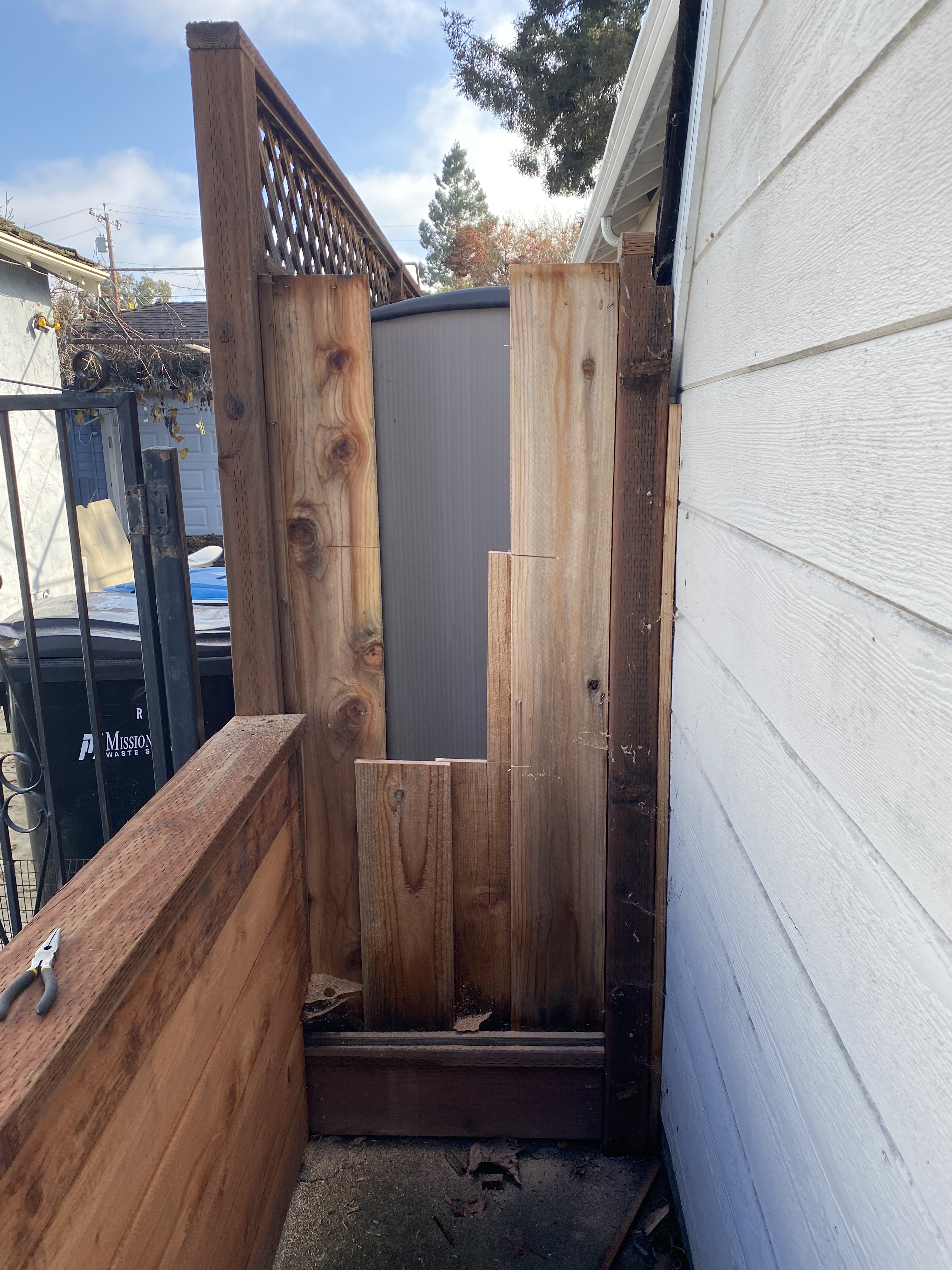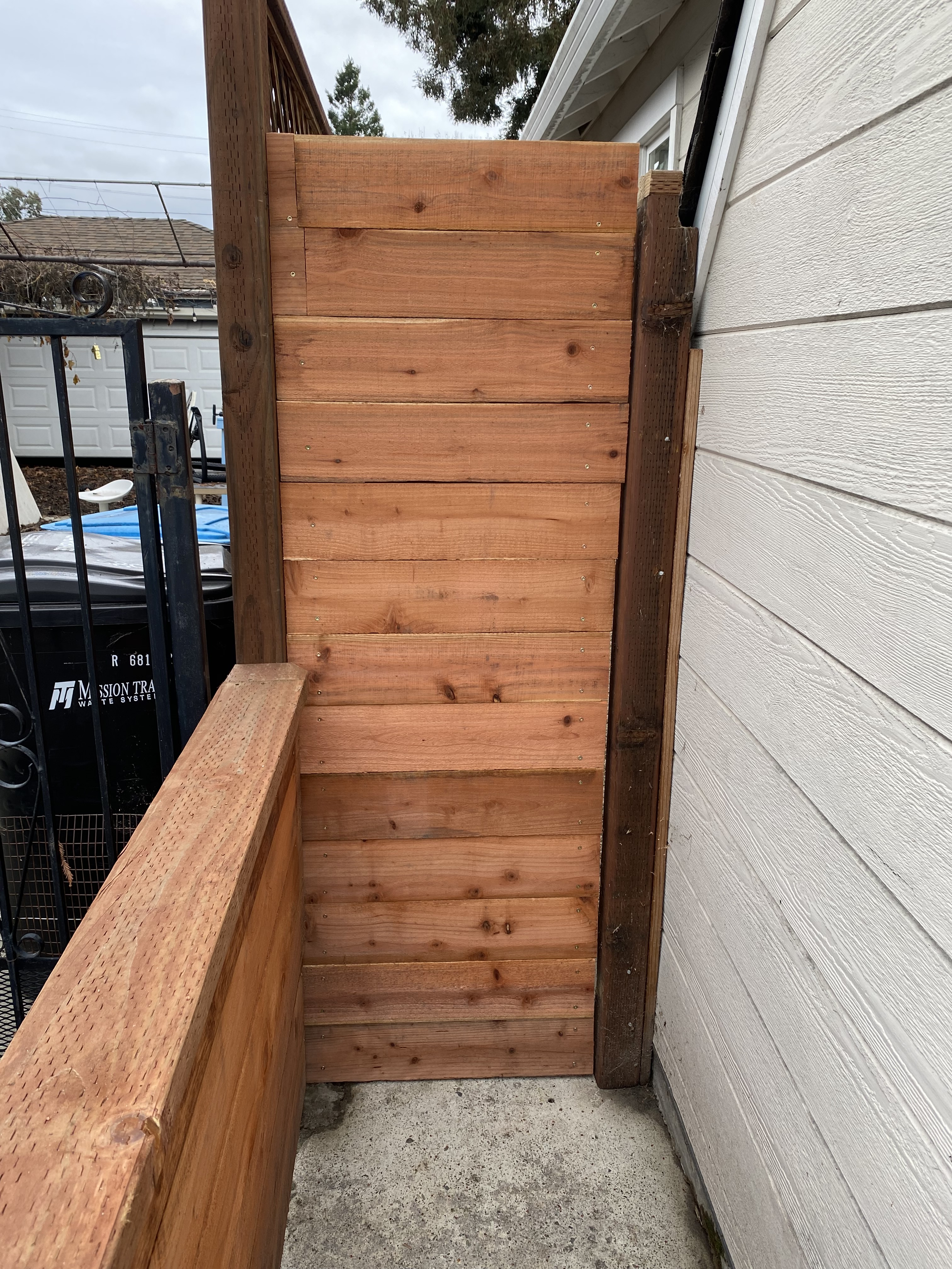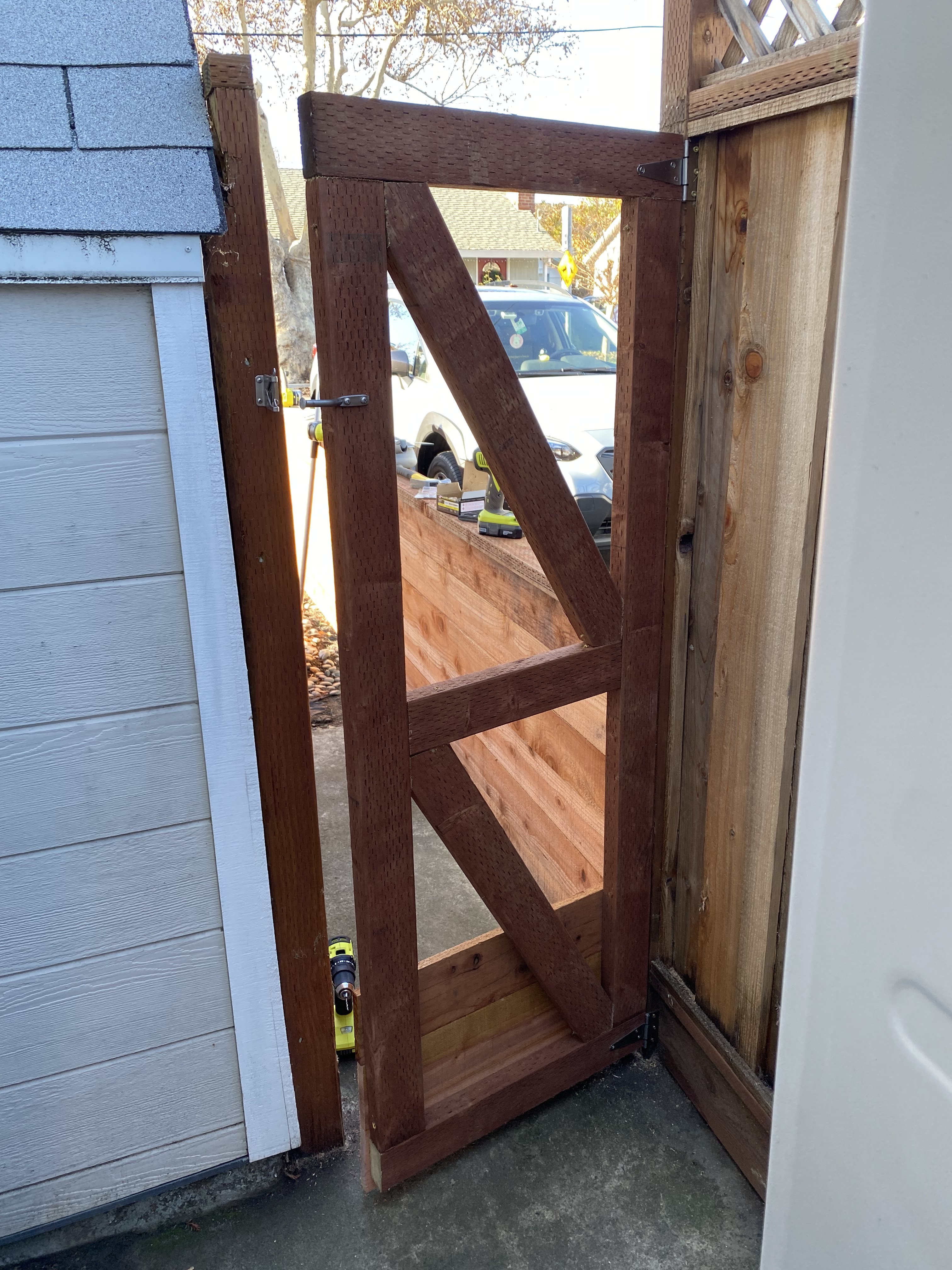 Project almost done. Just needed to demo the existing fence, then replace it with the gate. I designed the gate based on the existing fence post infrastructure.
