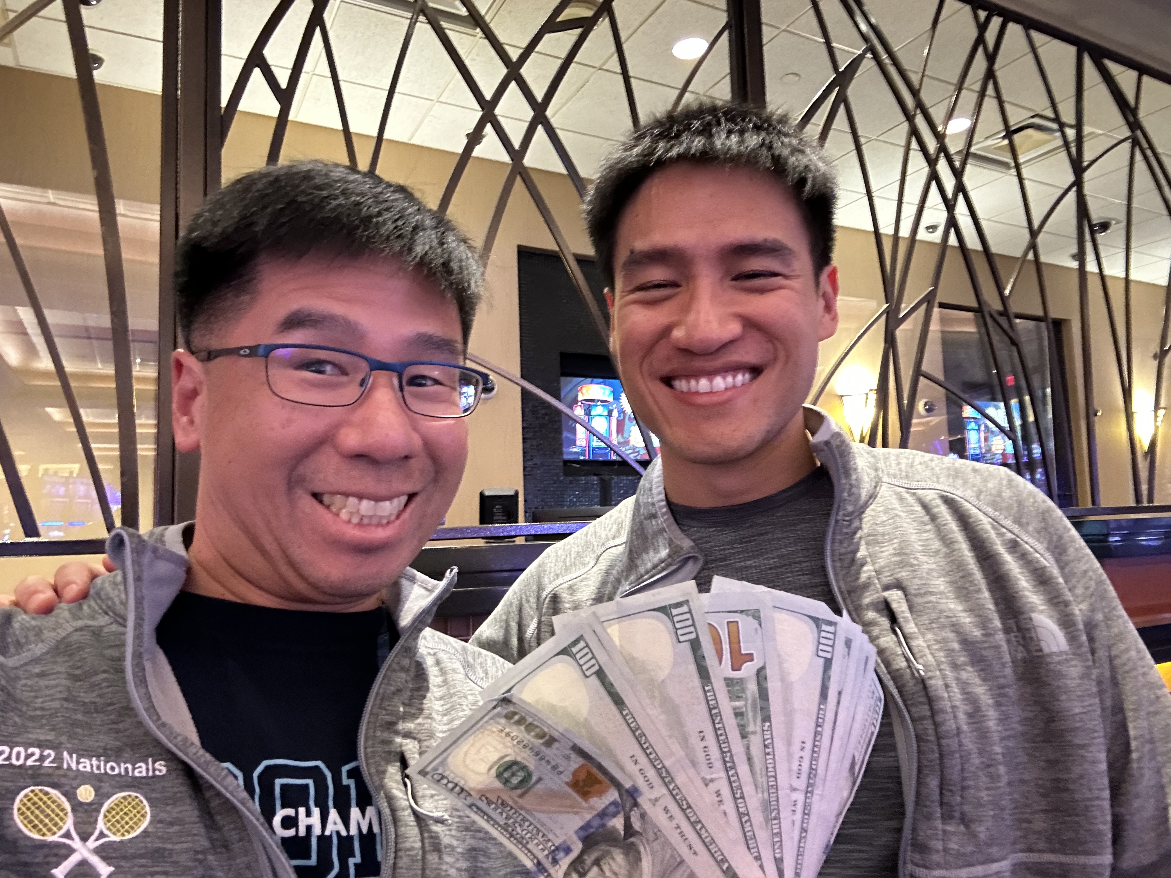 One weekend was spent in Sacramento playing tennis. We were supposed to be playing men’s 7.5 and 8.5 combo sectionals, but half the time was spent in the casino because of all the rain. We were the eventual 7.5 combo champions, and our 8.5 team was undefeated in six matches.