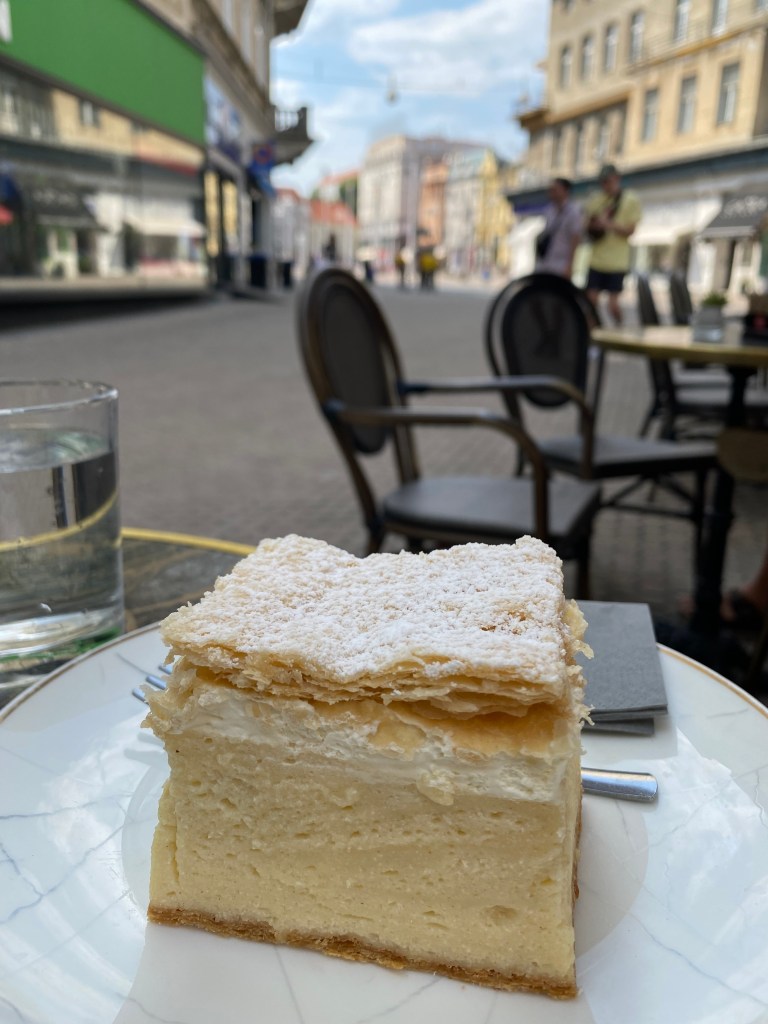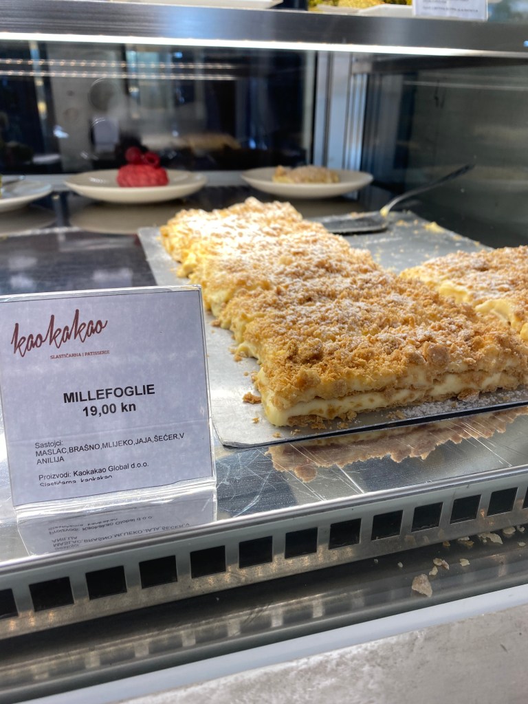 The shop we went to sold Mille-feuille. Quite possibly the best dessert I’ve ever had was a Mille-feuille from Ukraine in 2014. I am always motivated to try it whenever it’s an option at bakeries just to see if it could compare. In this case, the Croatian bakery did OK, but still not on par.