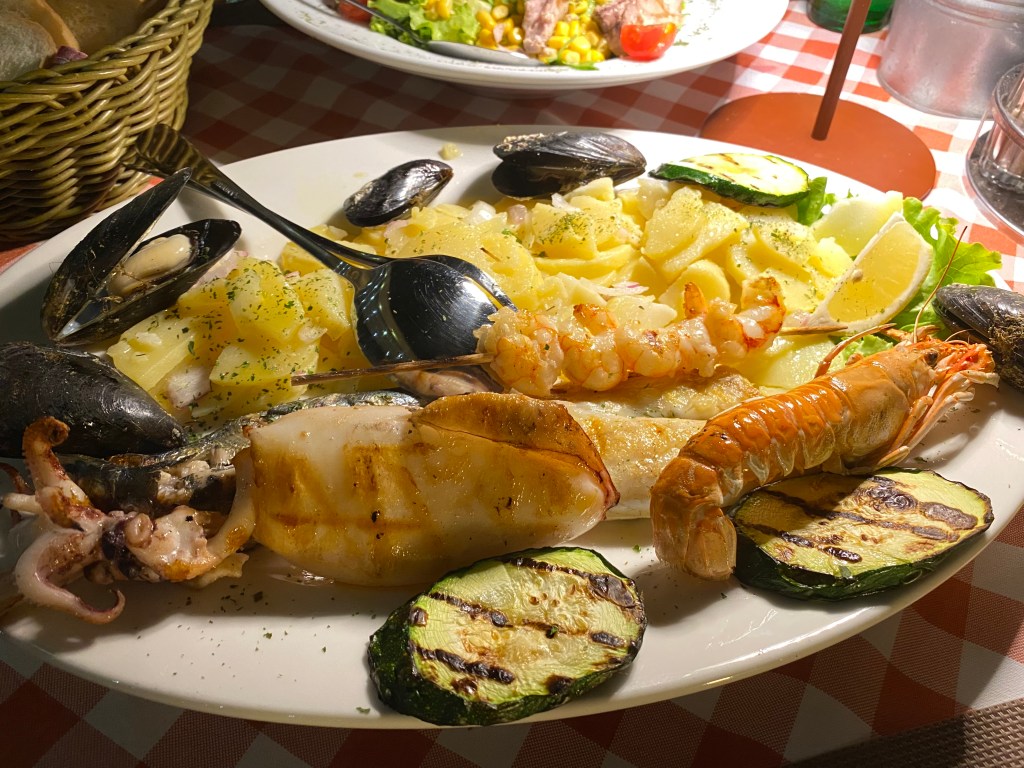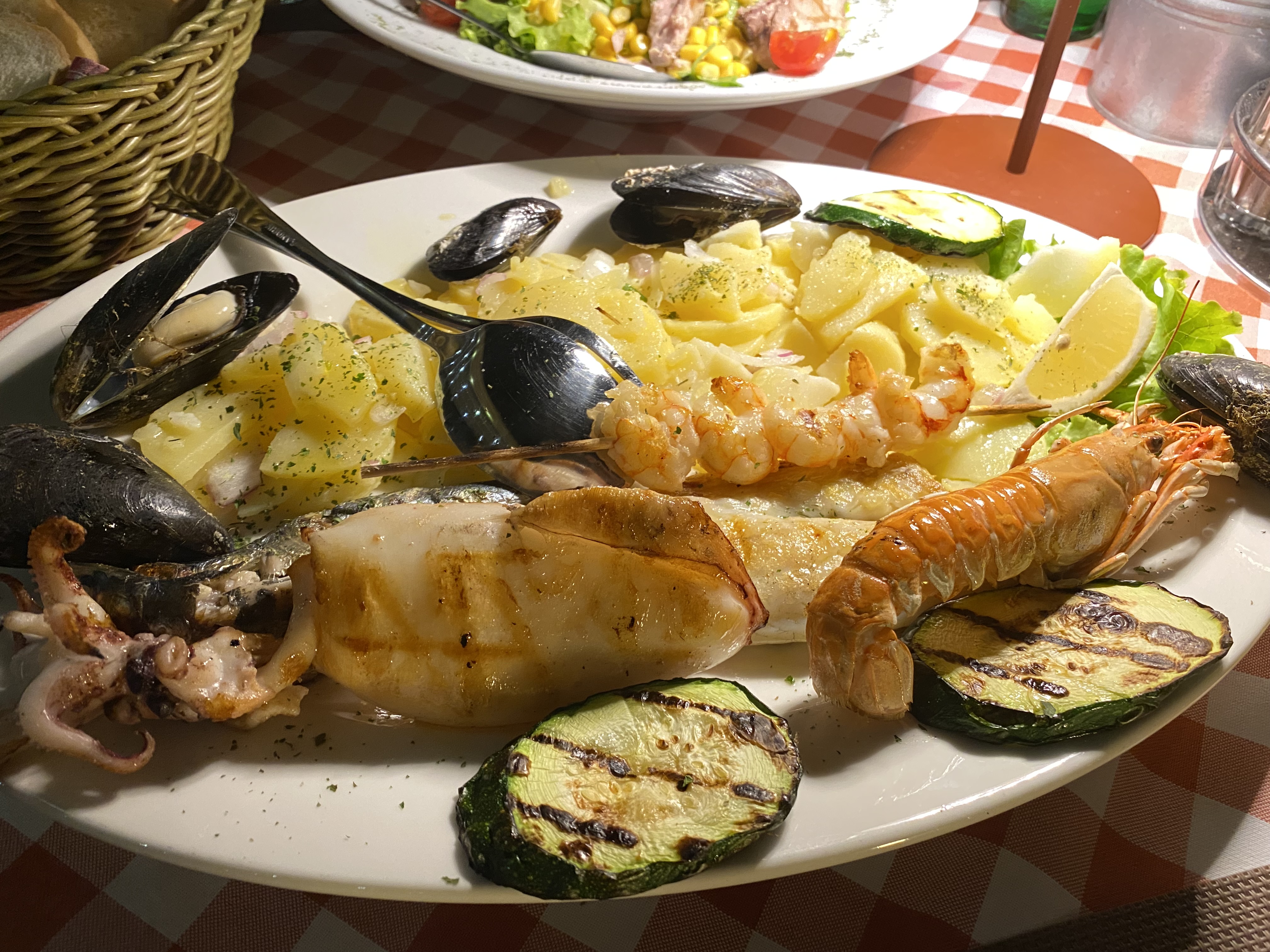Our first proper meal in the country did not disappoint. It was quite different from the central European palette, heavier on vegetables, yet flavorful. We had a seafood salad along with a medley of grilled oysters, shrimp, squid, and fish fillet over a bed of potatoes. Afterward, we walked the mile back to the Airbnb to rest up.