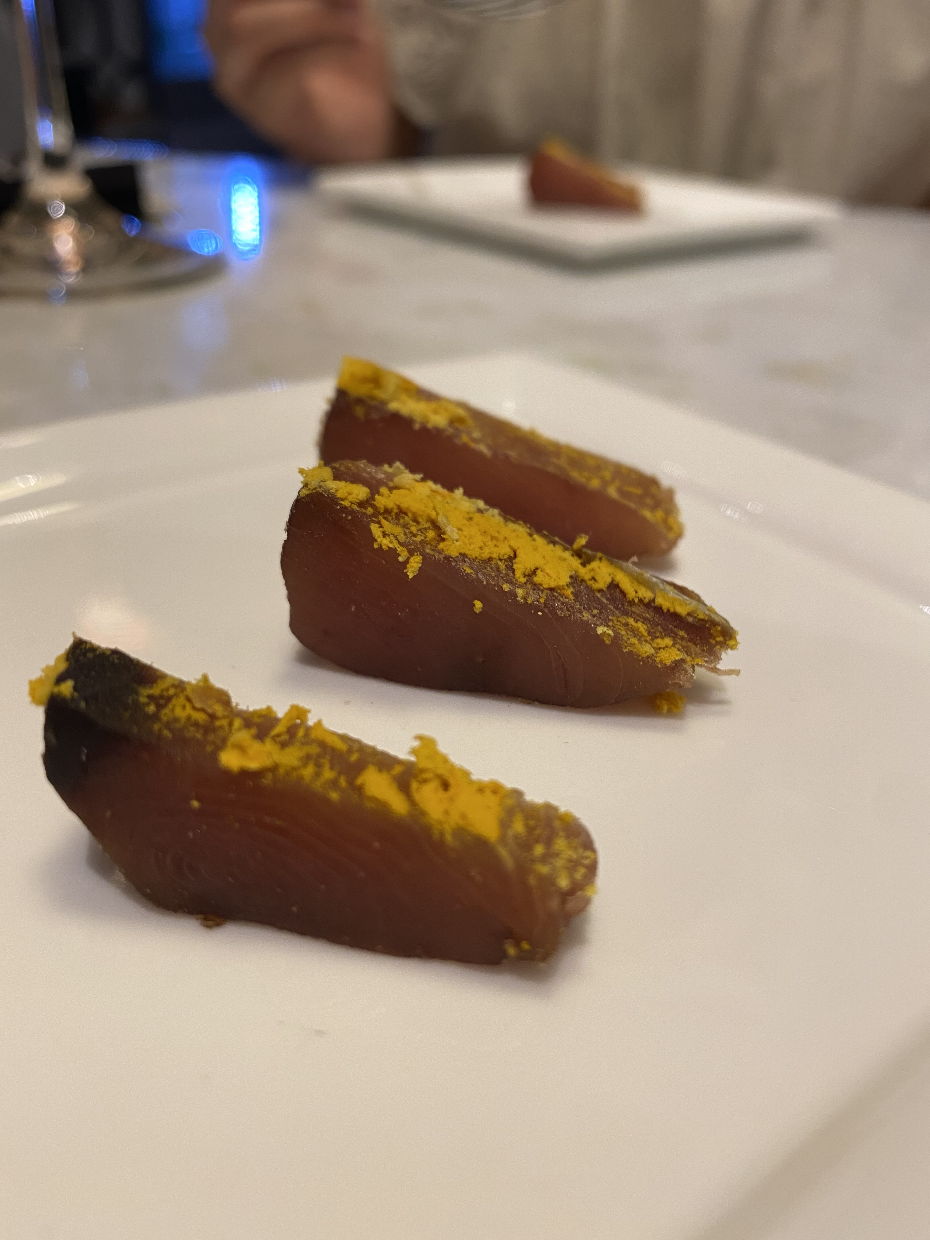 The tuna was raw, yet had a dried jerky texture with a smoky taste. I loved it.