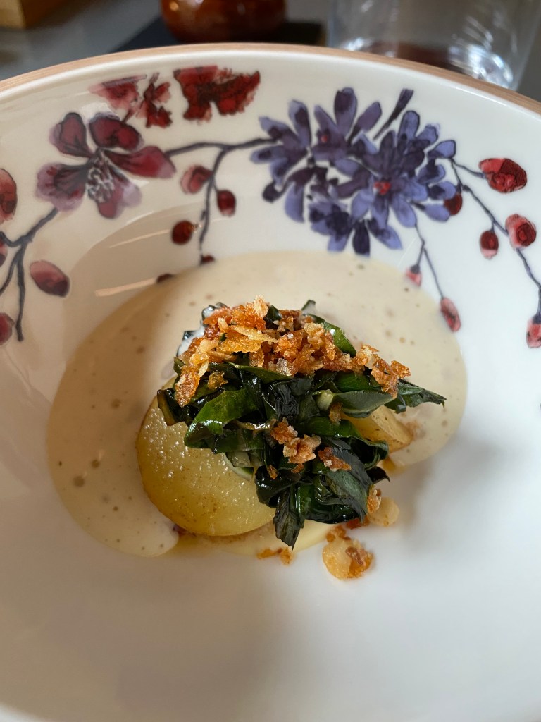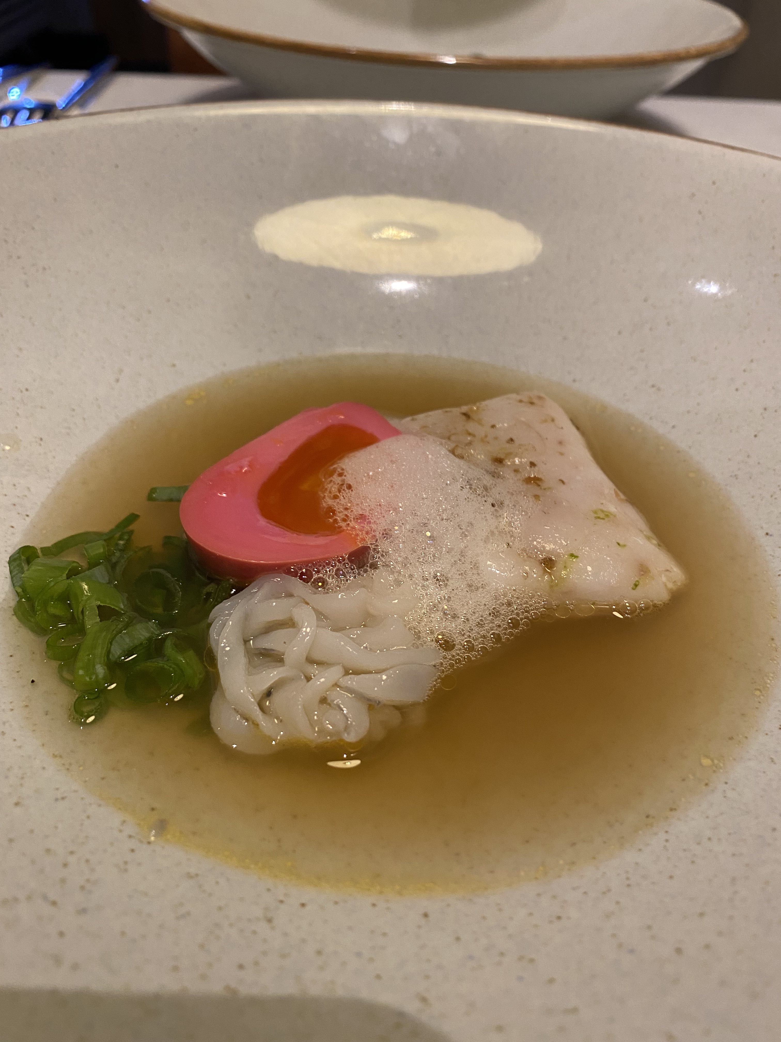 These two courses were the stars of the show. The Mol was made to like ramen, but the “noodle” is cuttlefish! The Raza skate fish was unbelievably good, and the sunchoke with fig leaf sauce was a brilliant play on mashed potatoes and gravy.