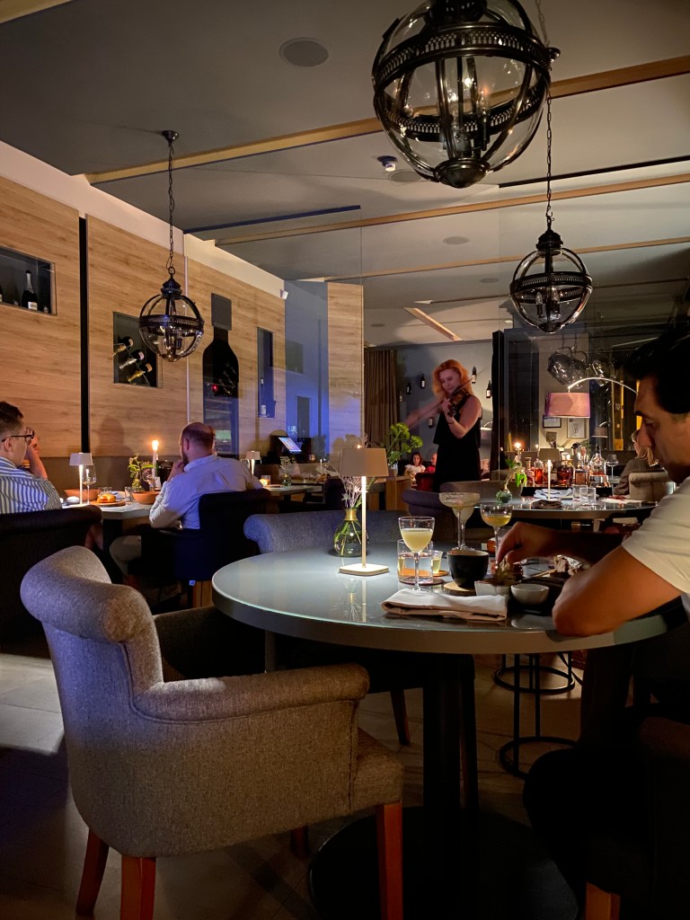 As we finished this course, the lights suddenly turned off without any notice. No warning. No reaction from staff. After a few minutes of silence and confusion from other guests, a woman dressed in black with violin in hand slowly walked in. She was practically gliding.