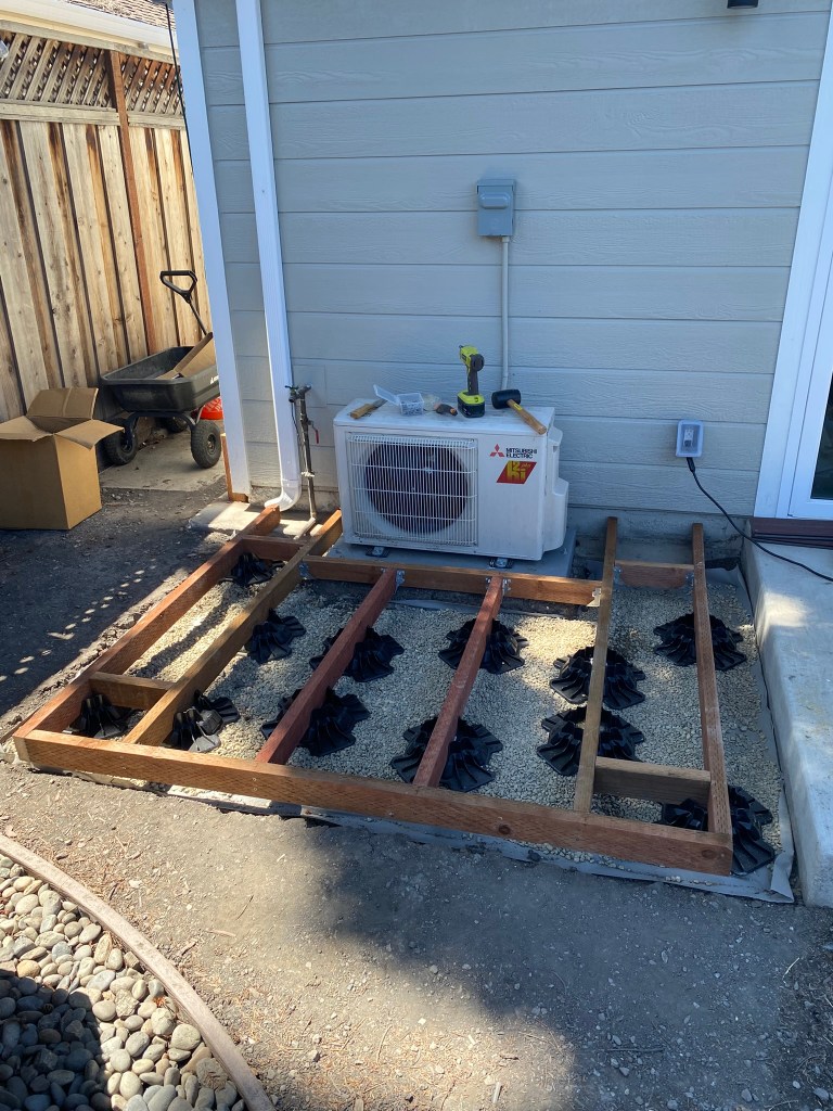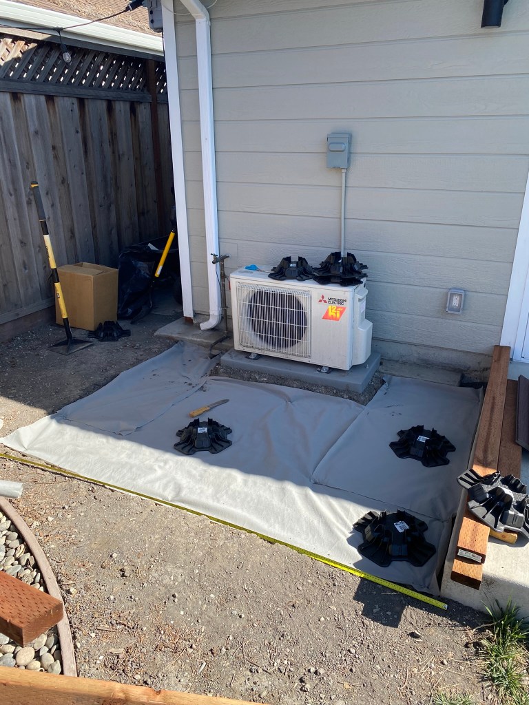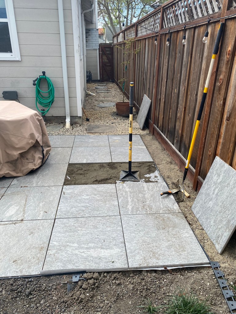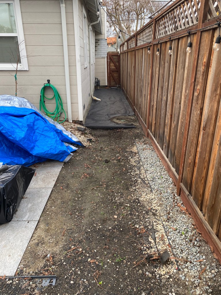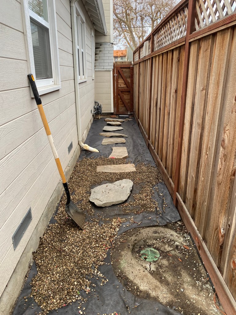In 2022 and 2023, we converted the front yard lawn into drought tolerant landscaping, built a side entrance to the backyard, and built a patio in the backyard.
