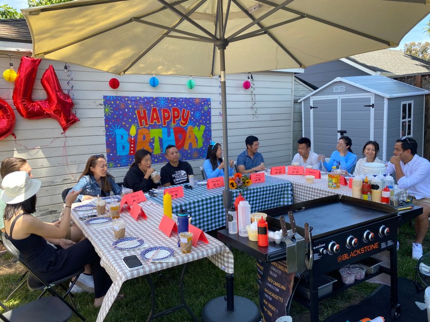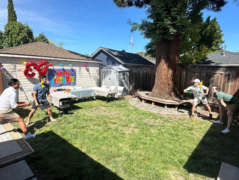 So back in June 2024, we hosted some friends in the backyard. The patio wasn’t big enough, so foldable tables and chairs were put onto the lawn near my neighbor’s garage – which is also the property line. The neighbor’s garage had experienced wear and tear, so decorations were put up in an attempt to hide the otherwise ugly backdrop. Afterward, we played some lawn games, and I found myself wondering where cups and drinks would go if the tables weren’t there.
