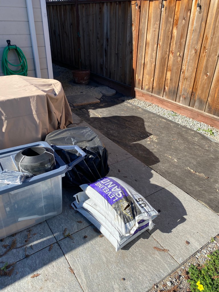 The patio, just like the first installation, was the biggest pain in the ass to restore. I bought 7 new bags of leveling sand (over 3 separate Home Depot trips due to terrible estimating) to level the ground. With my mom’s help, we fine tuned the pavers until they were level. Even though there were only 10 pavers, we spent many hours repeating this sequence: