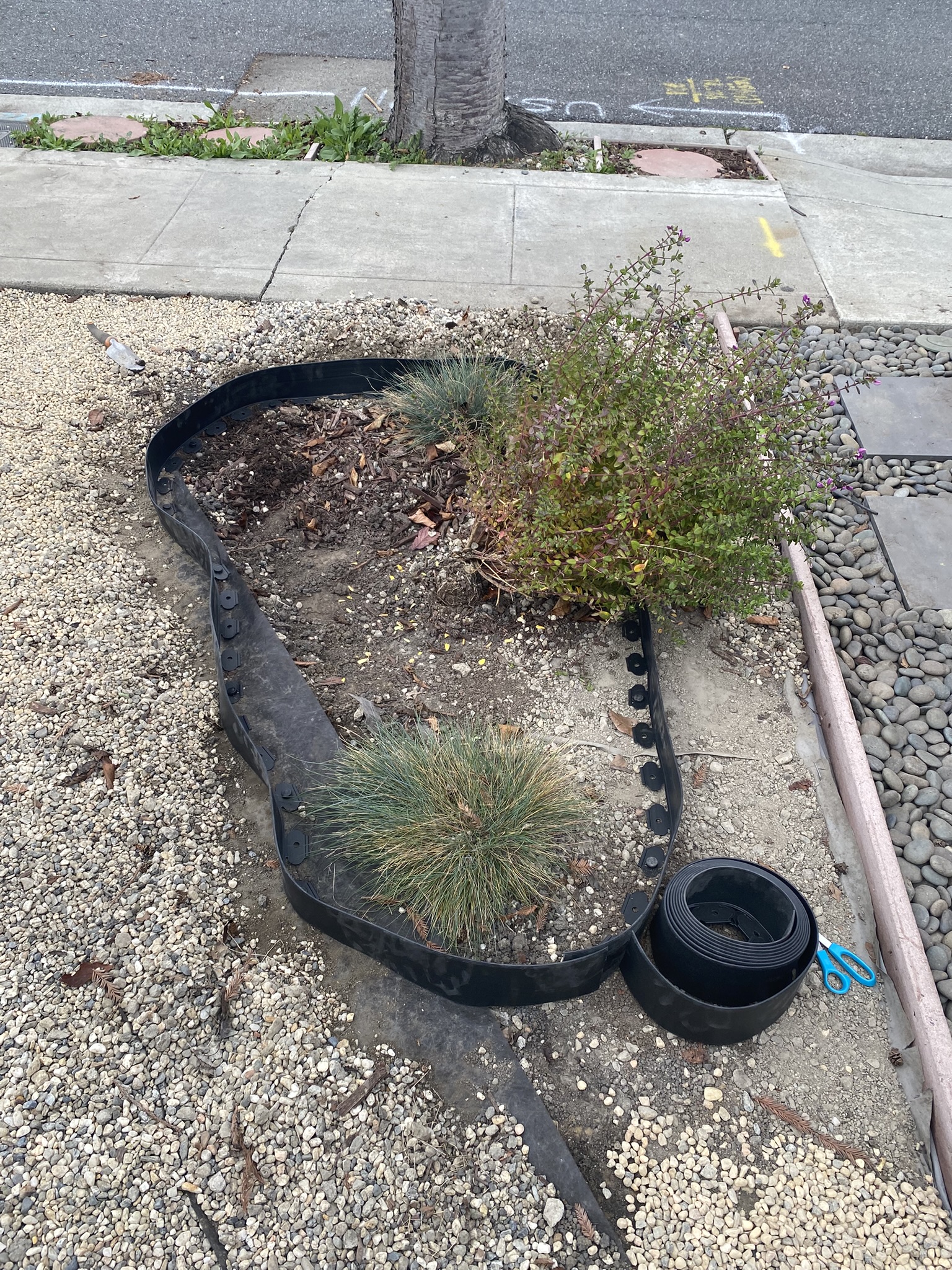 Next, the contractors had also all but destroyed one of the mulch beds. I had to install new edging and put in a couple new plants.