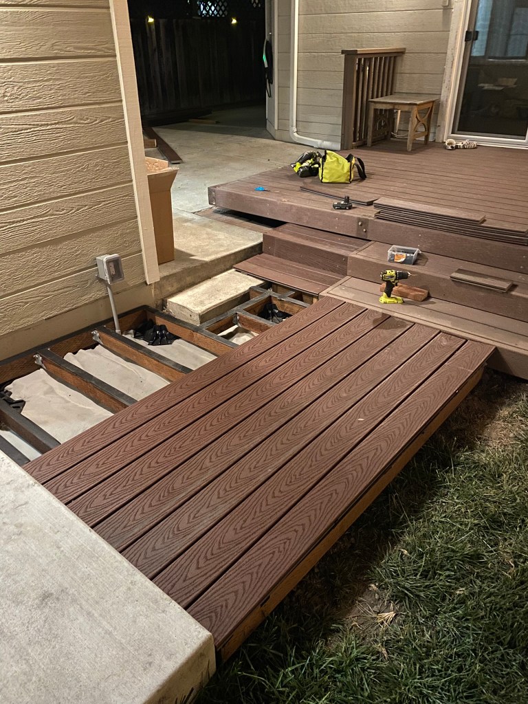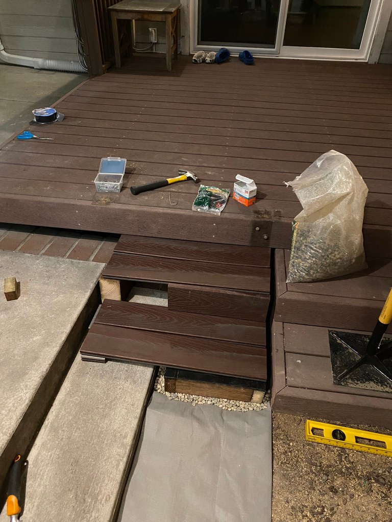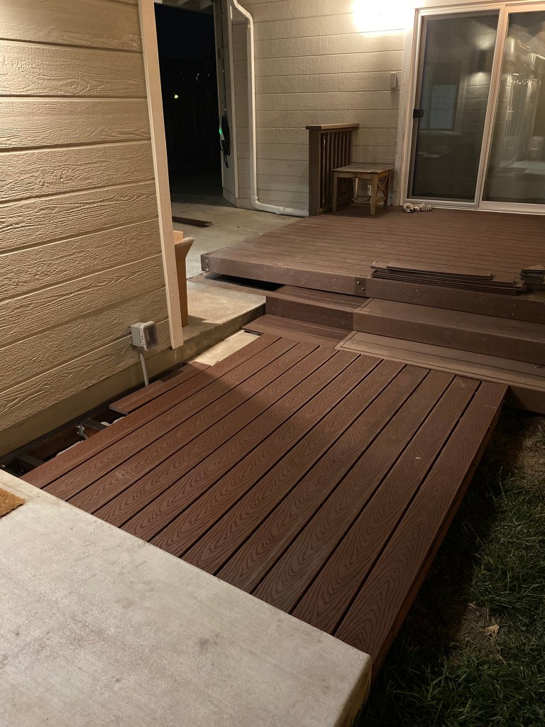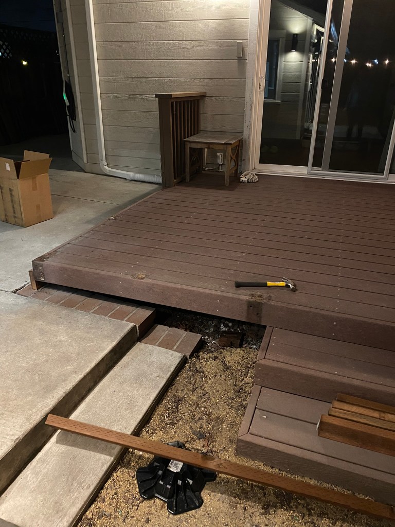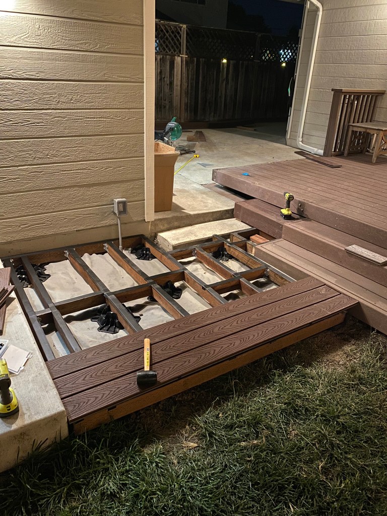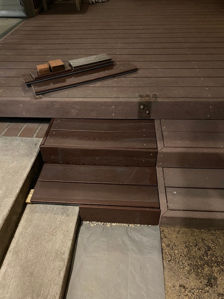 I eventually settled on a composite deck. I wanted the deck to match the color of concrete, but Bonita firmly rejected that idea. She suggested matching the color with the existing deck, to which I reluctantly agreed (spoiler: she was right about the color, and she is right about most things in general).