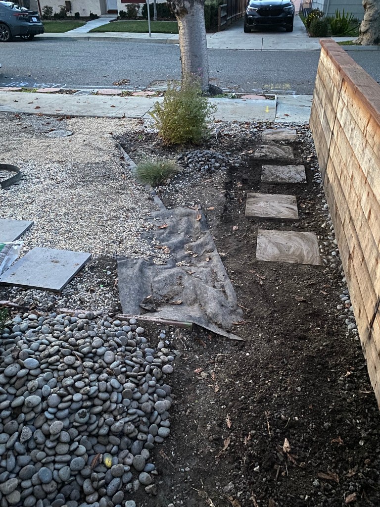 First came the front yard, and site preparation was a pain in the ass. I manually separated dirt, small pebbles, and river rocks from each other. The more efficient but costlier method would have been to just toss everything, then buy new river rocks and pebbles to pour down. But it didn’t sit well with me to throw away perfectly good materials, so I separated everything and hosed it down.